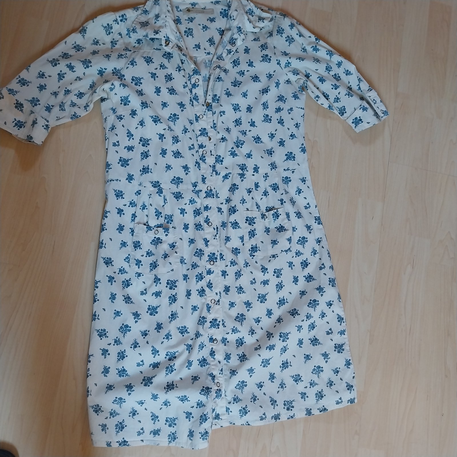 Boli len raz oblečené na svadbu. Vzor: kvetovaný Strih: áčkový Dĺžka: po kolená (vzadu sú dlhšie, viď. foto) Výstrih: véčkový Rukáv: dlhý Typ materiálu: viskóza Materiál: 100 % viskóza Pozn.: Dán...