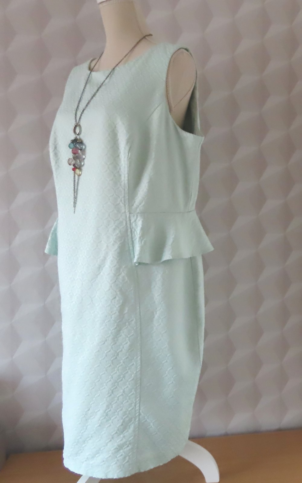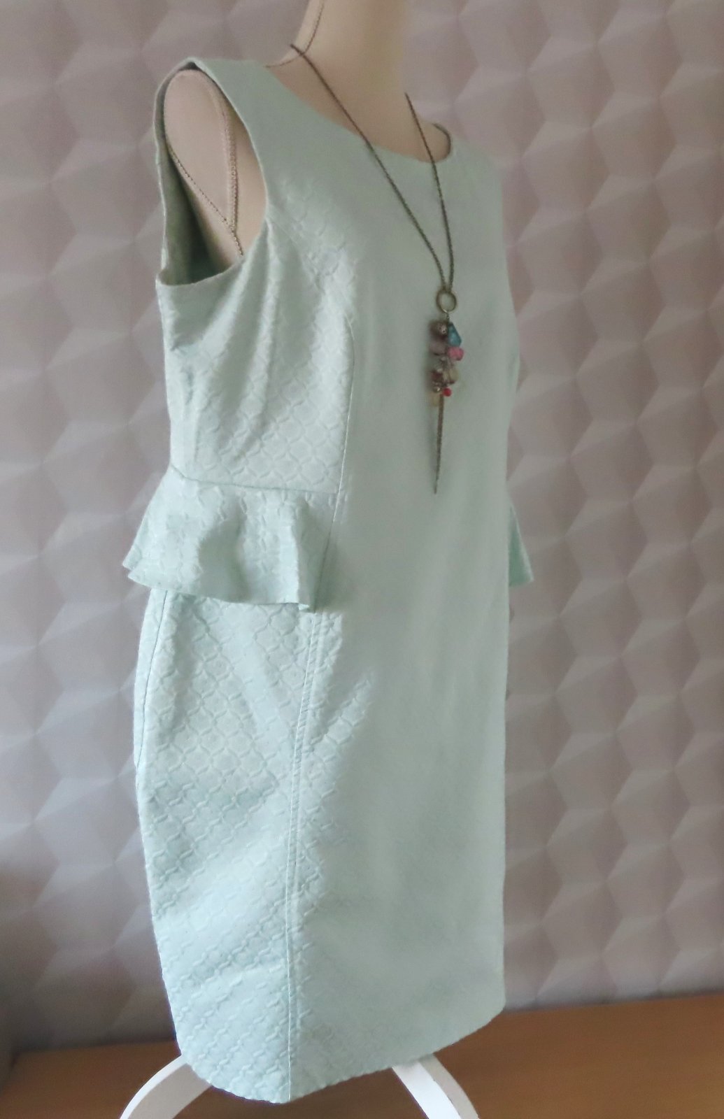 Dámske šaty jemnej mentolovej farby, zn. F&F, veľkosť XXL - rozmery: dĺžka 97cm, pod pazuchami 2x57cm, pás 2x49cm.