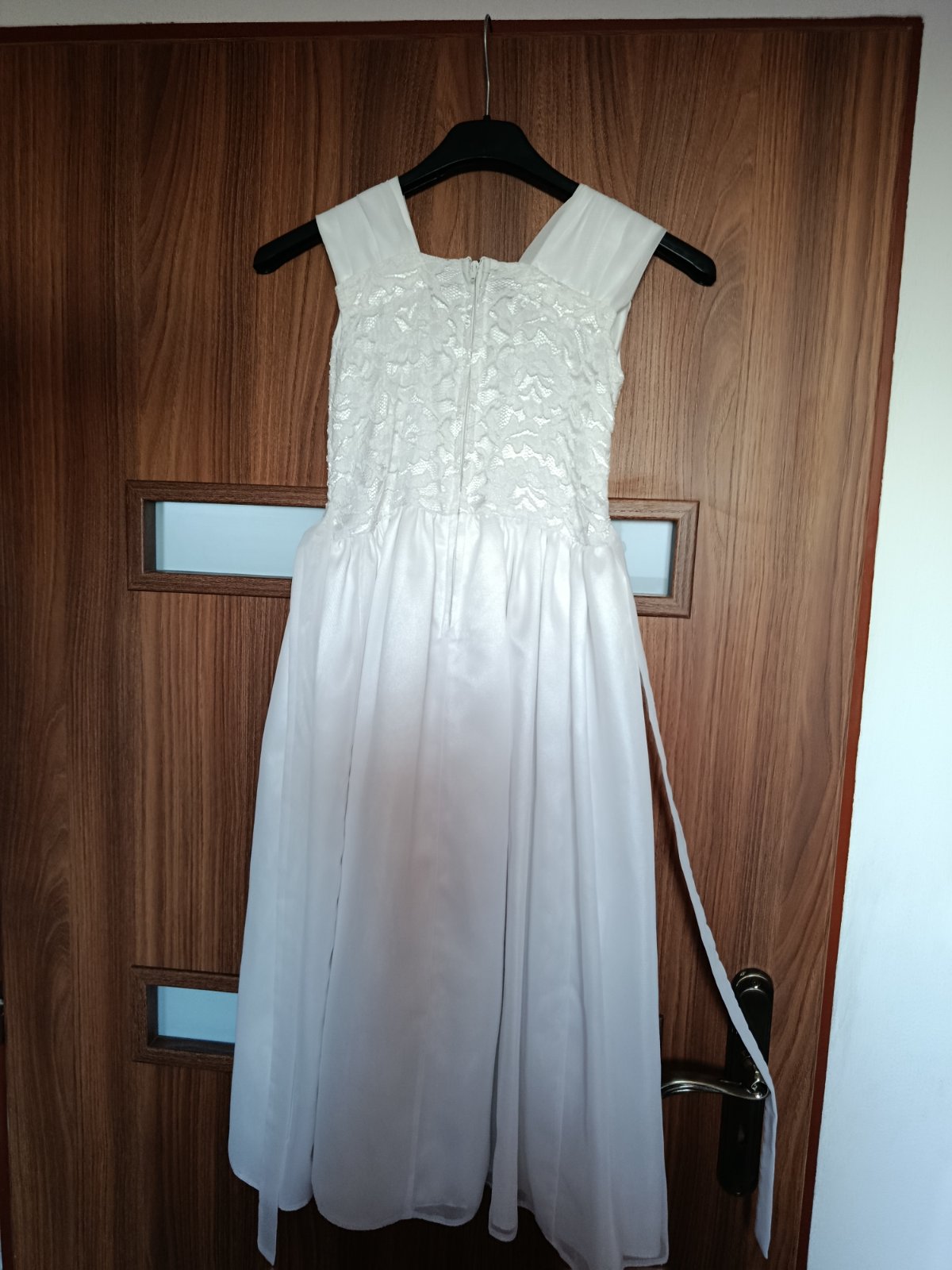 Predám šaty na prvé sväté prijímanie,boli raz oblečené veľkosť tak 134,8 až 9.rokov ale v prípade záujmu ich premeriam,dajú sa zviazať vzadu,