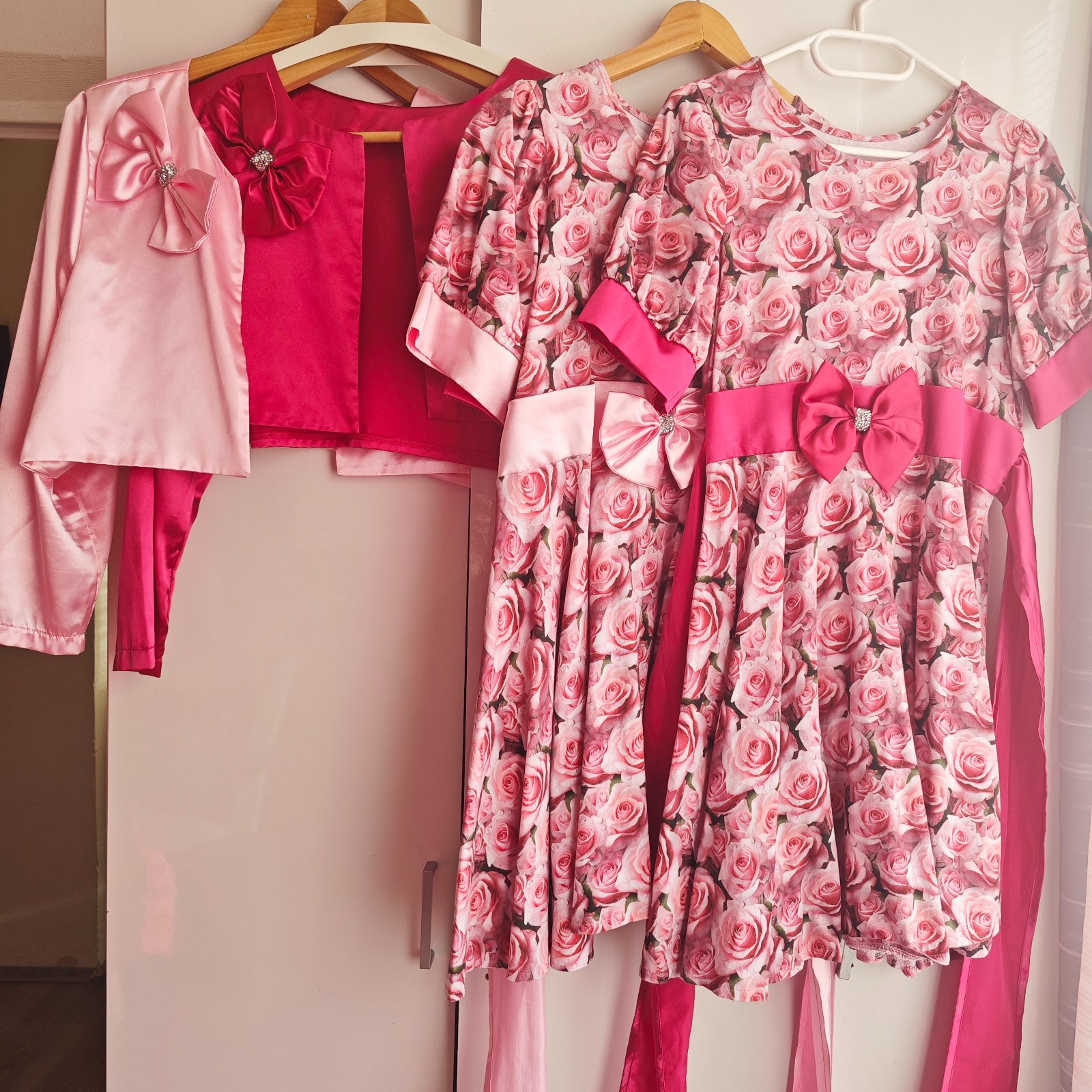 Dvoje točivé šaty s bolerkom pre plnoštíhle deti