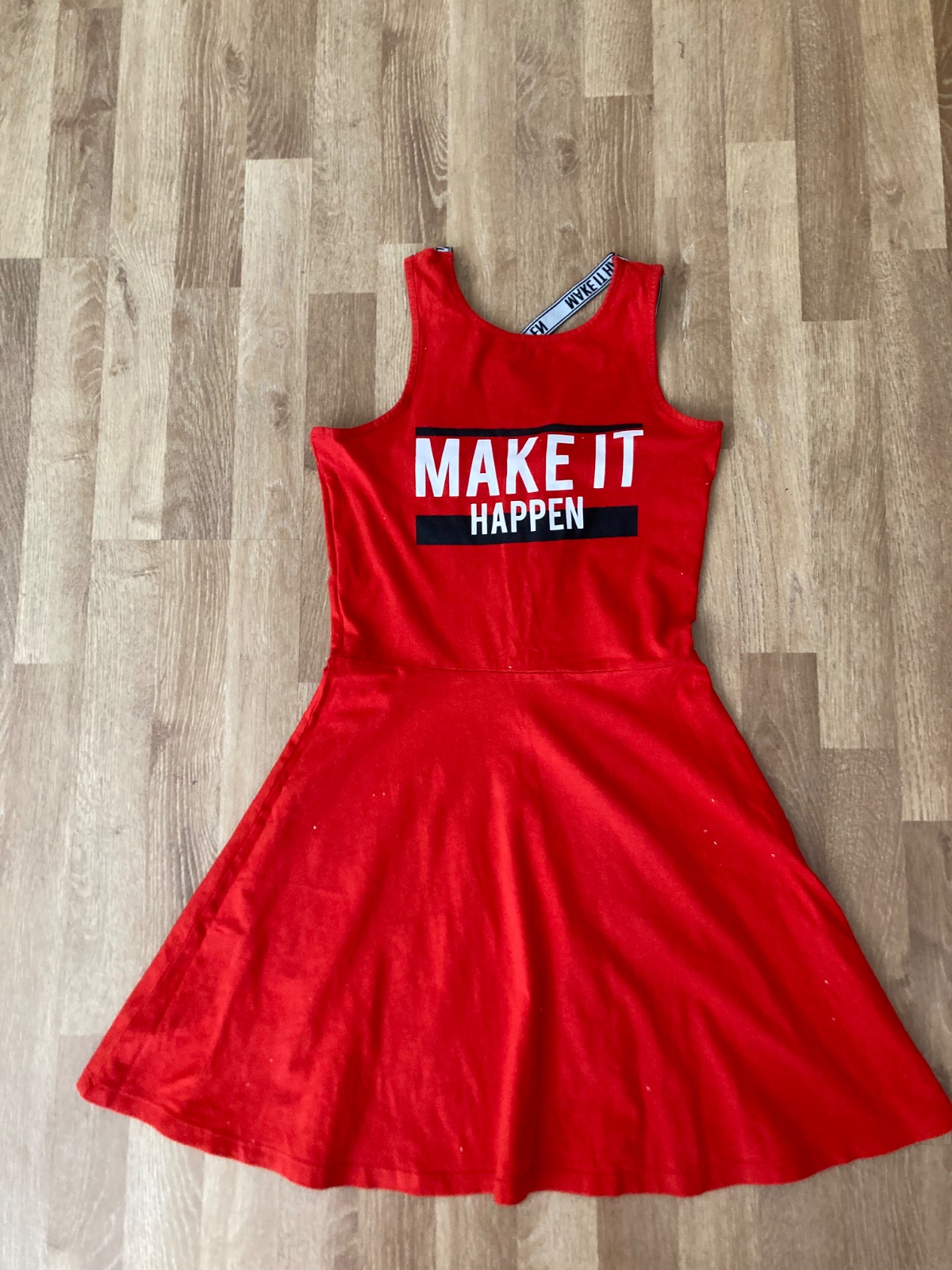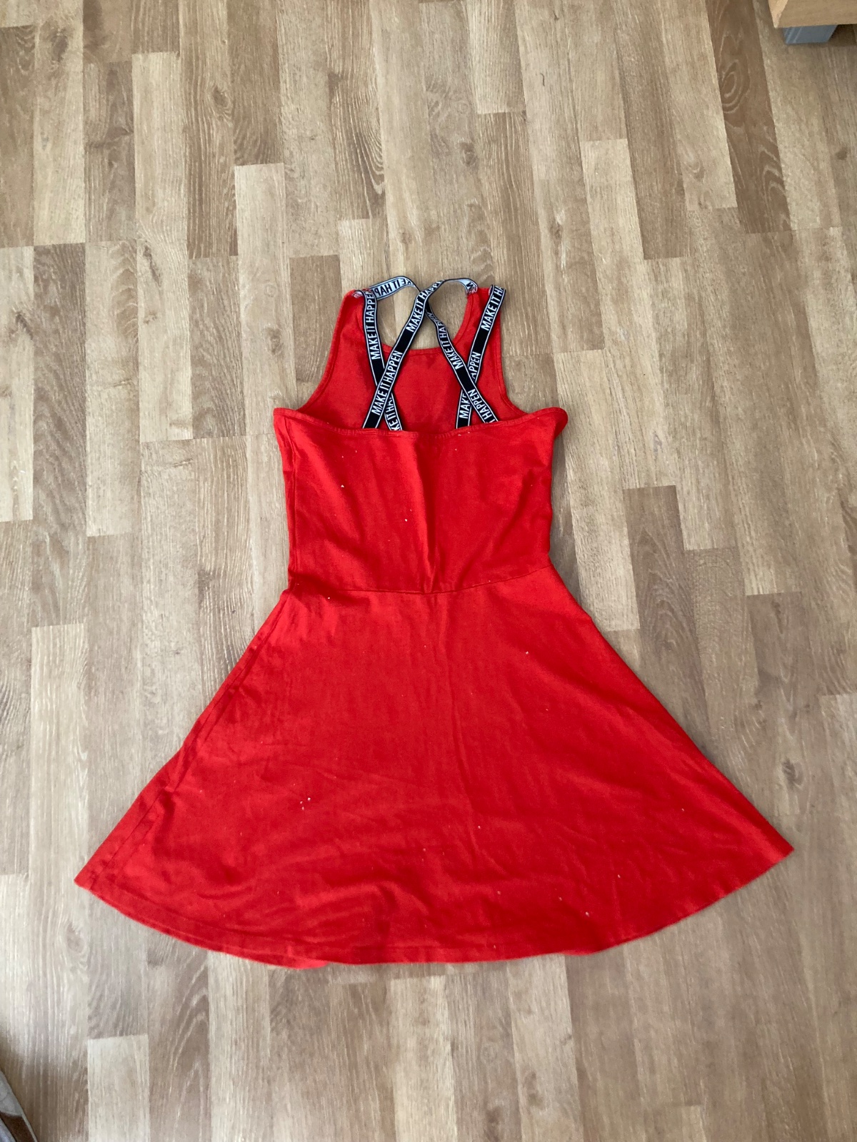 Oblečené 1-2x, sú ako nové. Moja dcéra ich mala na dovolenke a nosila s opaskom-viď foto. Vtedy mala 157cm. Rozmery: šírka popod pazuchy 2x40cm, šírka dole 2x60cm (strih do A) dĺžka 80cm max. vol...