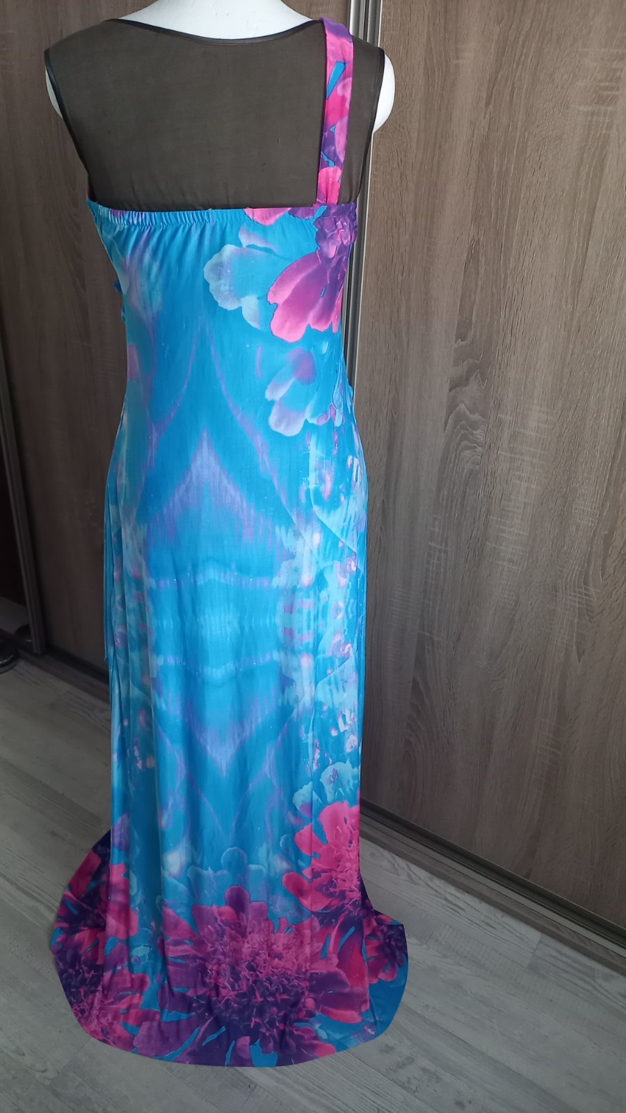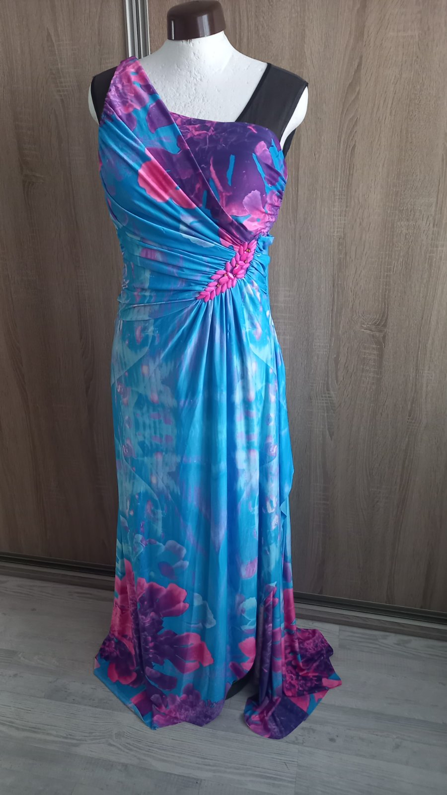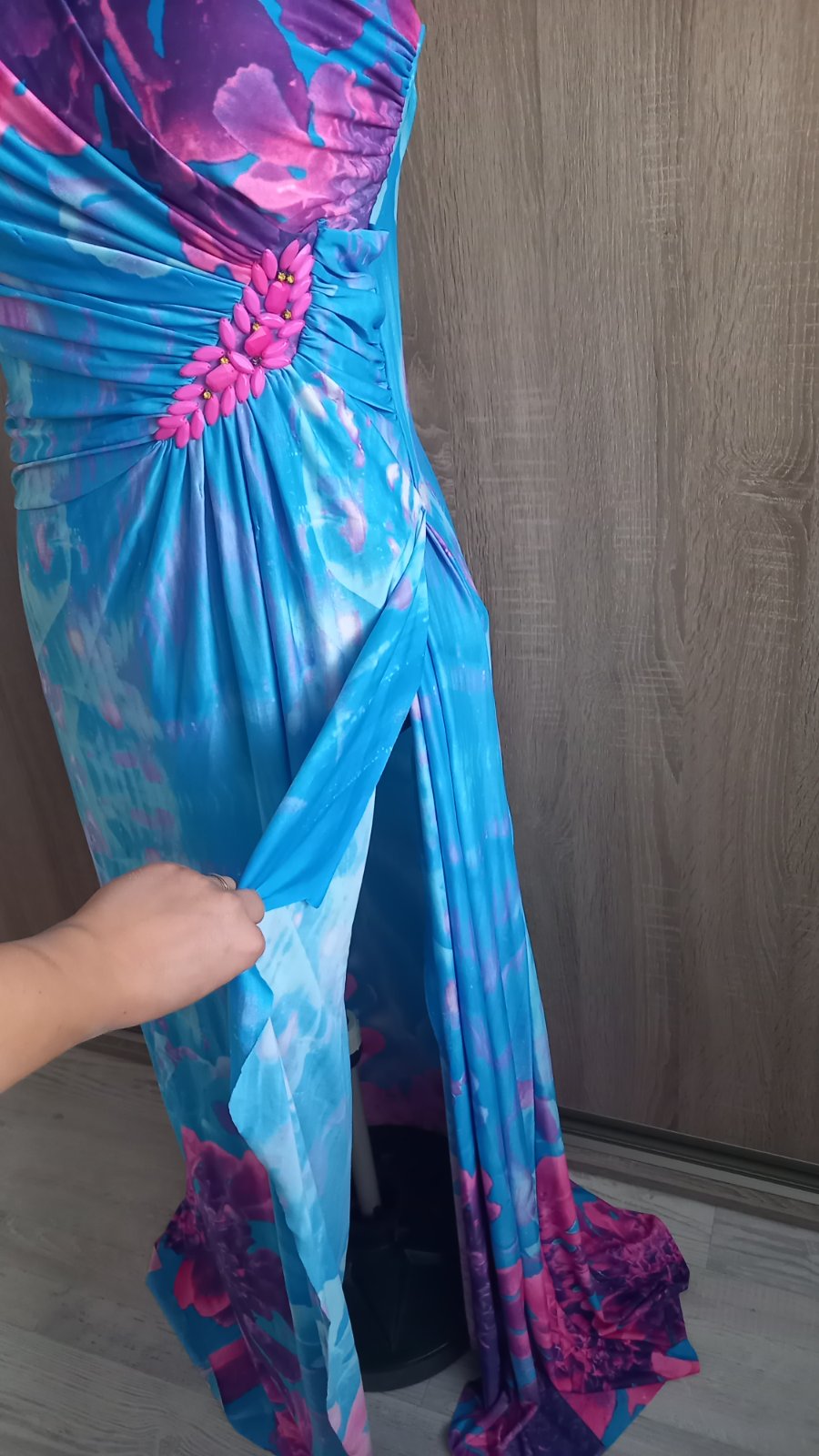 Spoločenské šaty, ľahky elastický materiál, pekne formujú postavu. Sú na jedno ramienko s rozparkom na nohe. Veľkosť M-L