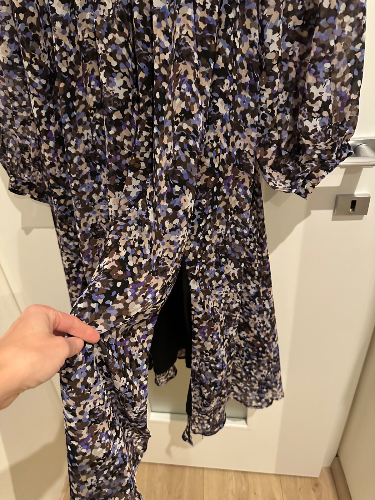 Krasne šaty nové, nenosené. Na boku majú zips a v predu na boku rozparok mierny. Krásne rukávy.