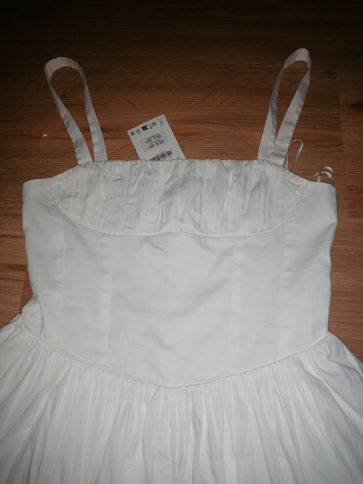 nové, krátke a pohodlné šaty. Ja ich nevyužijem. Vzadu na zaviazanie. Veľkosť uvedená 38/M ale sadnú v pohode aj na 36/S Zloženie: 48% bavlna, 13% viskóza, 38% polyester, 1% elastan