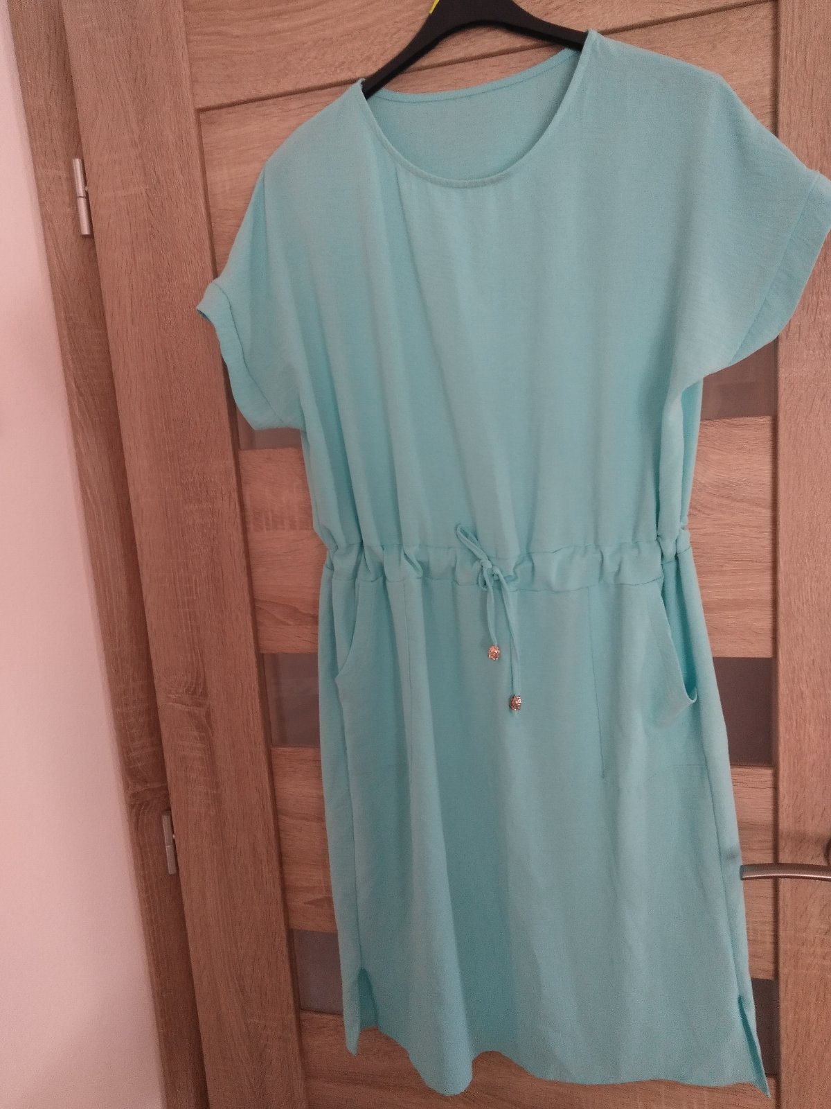 Mentolové šaty H&M 🖊️ Cena : 5,40 € 🖊️ Veľkosť : L (40) 🖊️ Rozmery : celková dĺžka : vpredu 83 cm, vzadu 96 cm, šírka pod pazuchami : 2x47 cm 🖊️ Príjemný, mäkký, elastický materiál