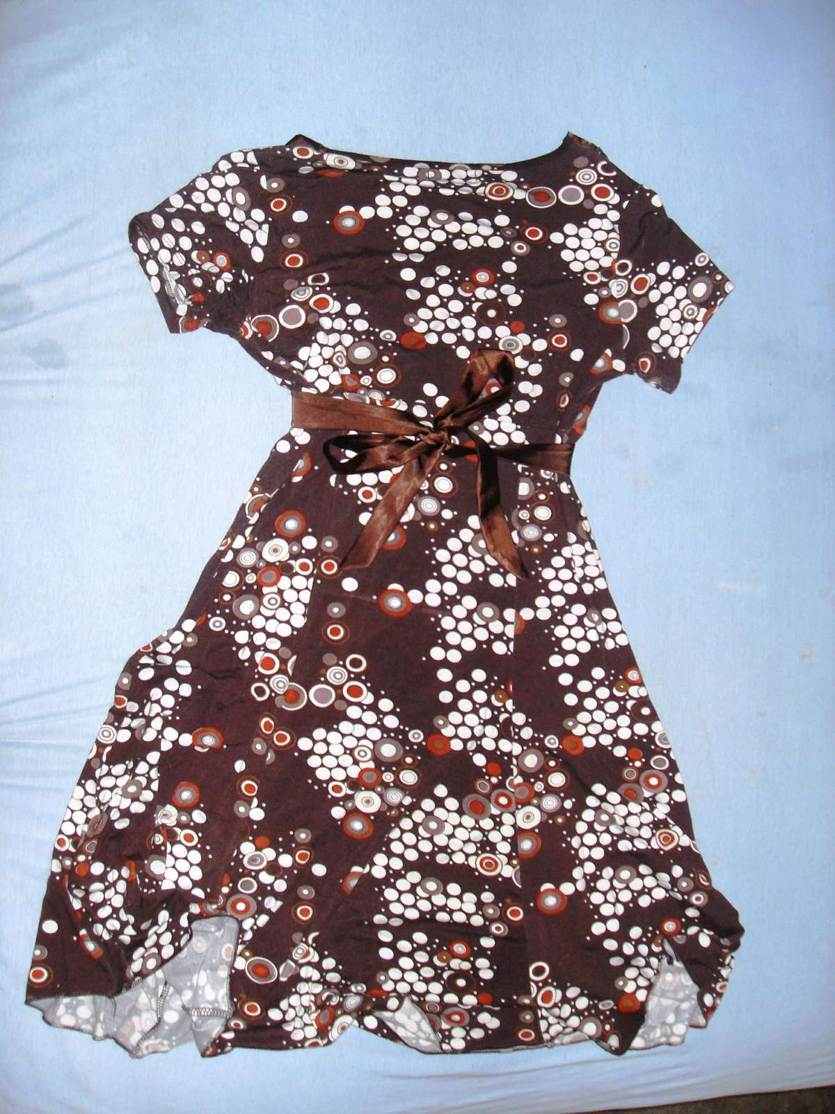 Predám krásne hnedé šaty so saténovou mašľou na zaväzovanie pod prsiami vhodné aj pre tehuľky.Ja som nosila iba chvíľu v tehu. Veľ. S/M/L.Sú elastické, takže sa veľmi dobre prispôsobia viacerým veľkostiam. Veľmi príjemné na nosenie. Dĺžka meraná pod prsiami až dolu 65cm.