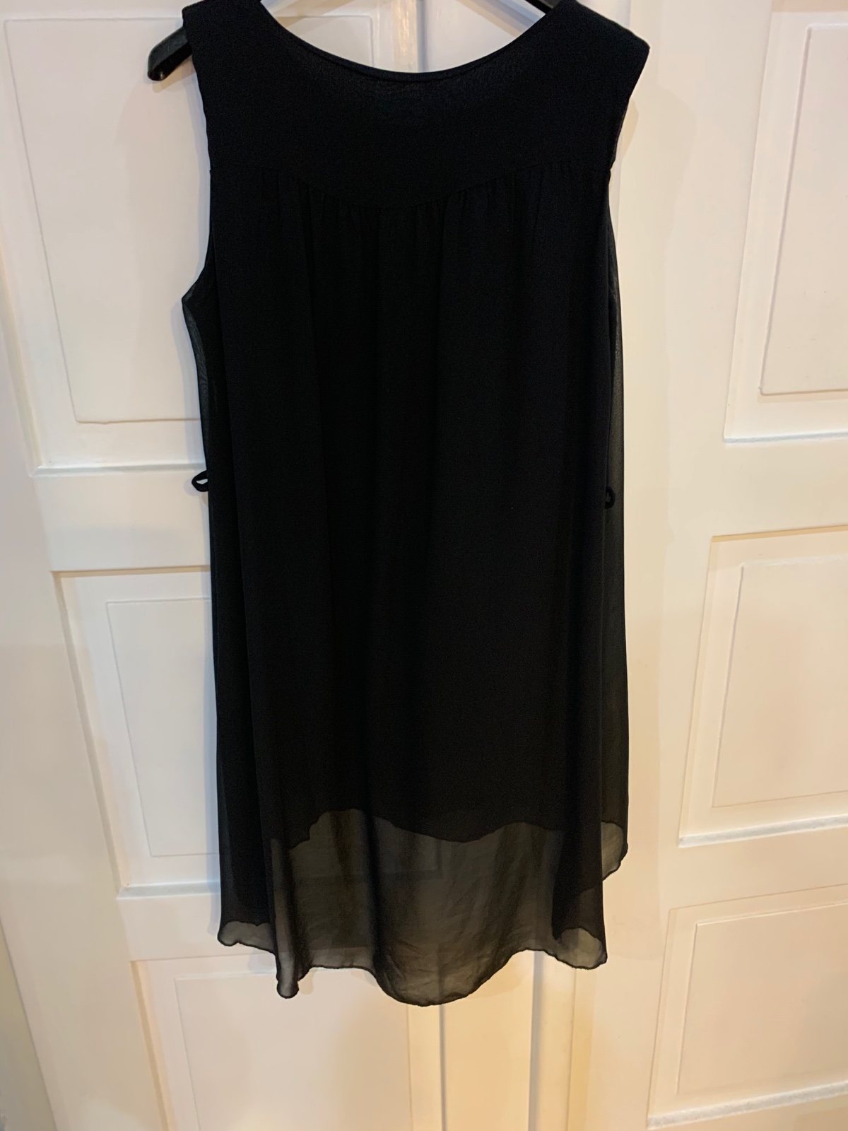 Elegantne šaty , boli oblečené 1x , vpredu kratšie , vzadu predĺžené , sú voľnejšieho strihu. Na pleciach sú glitre