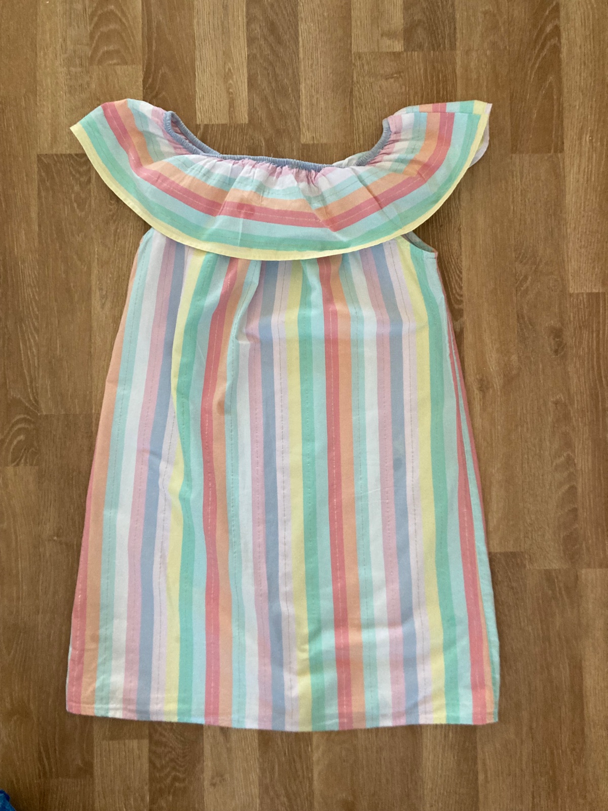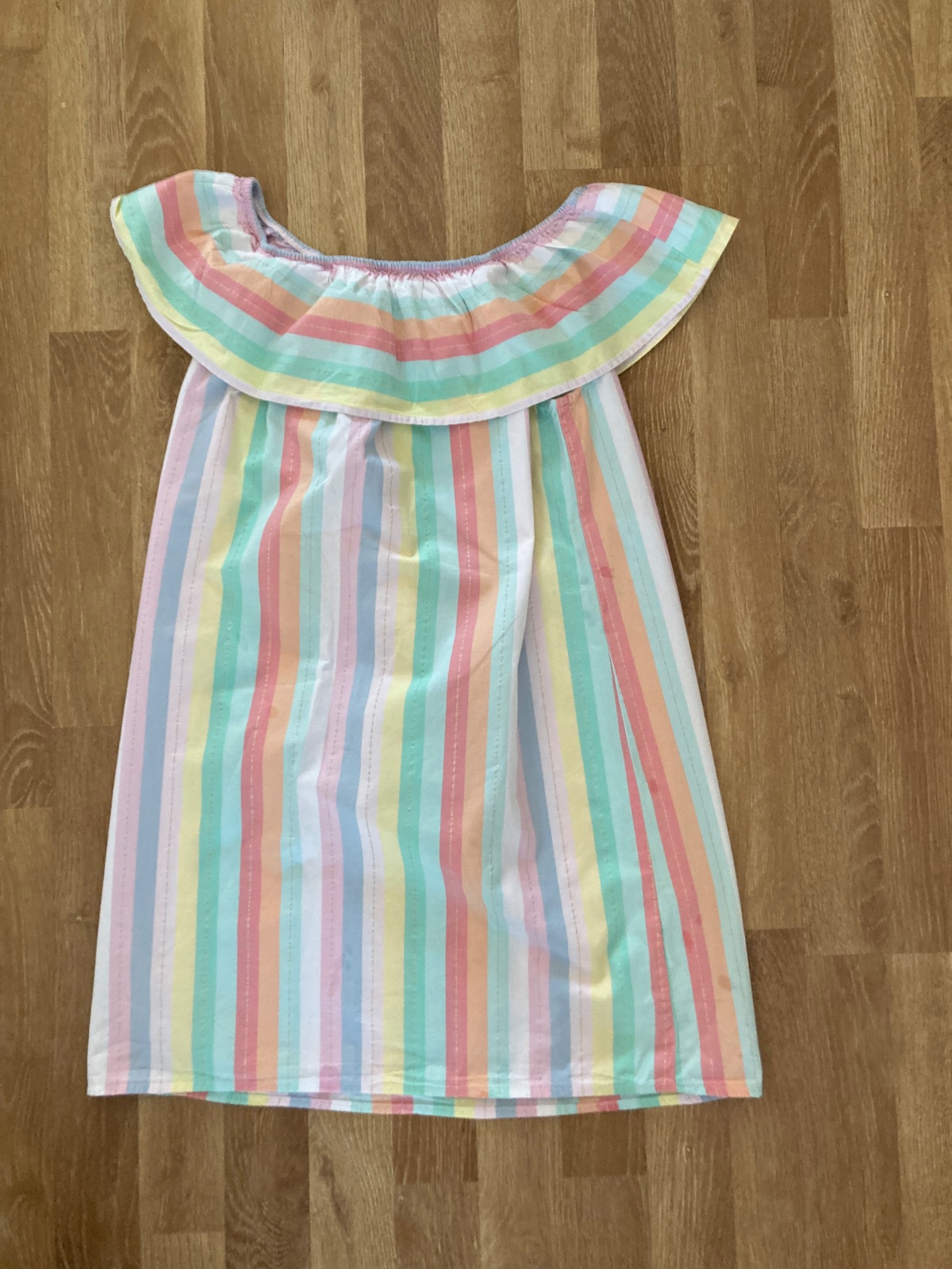 Ľahké letné dvojvrstvové šaty asymetrického strihu (dlhšie na bokoch). Veľkosť 146/152. Celková dĺžka od ramena 85-90 C, pás je elastický, v nenatiahnutom stave má 28 CM. Bez poškodení, ako nové.