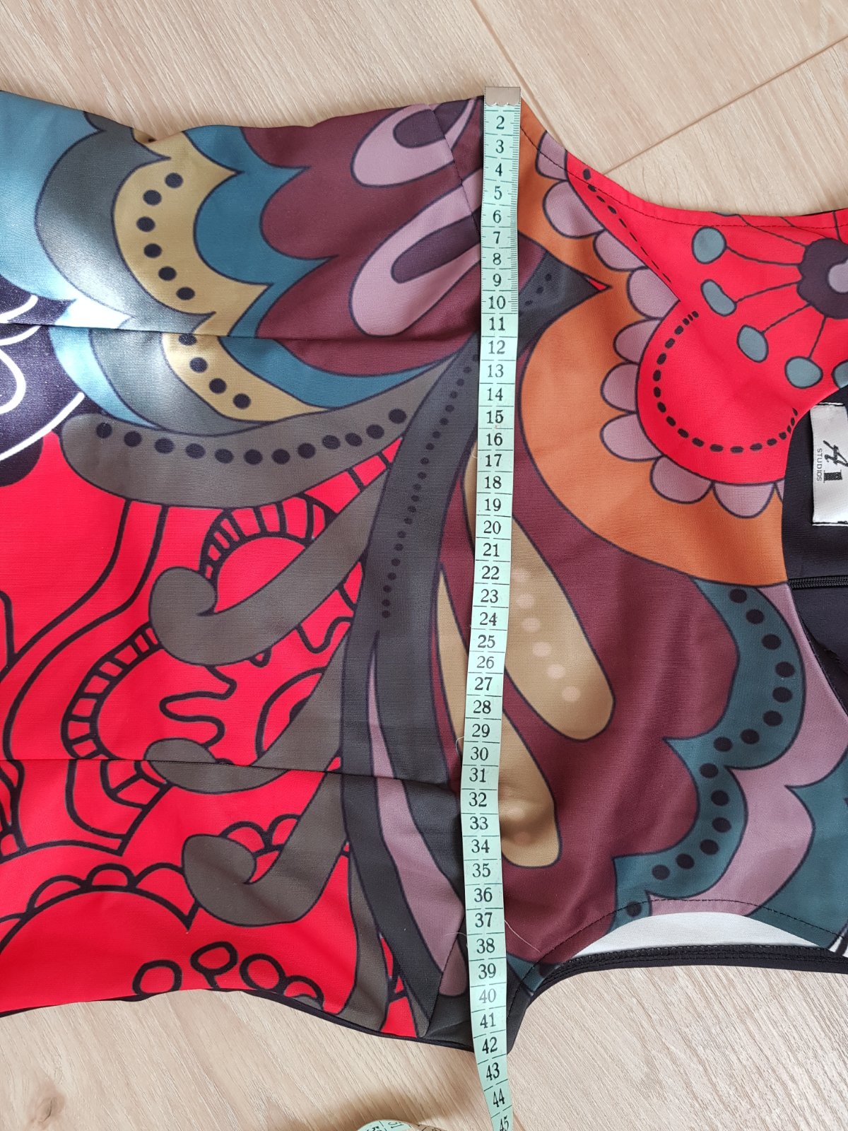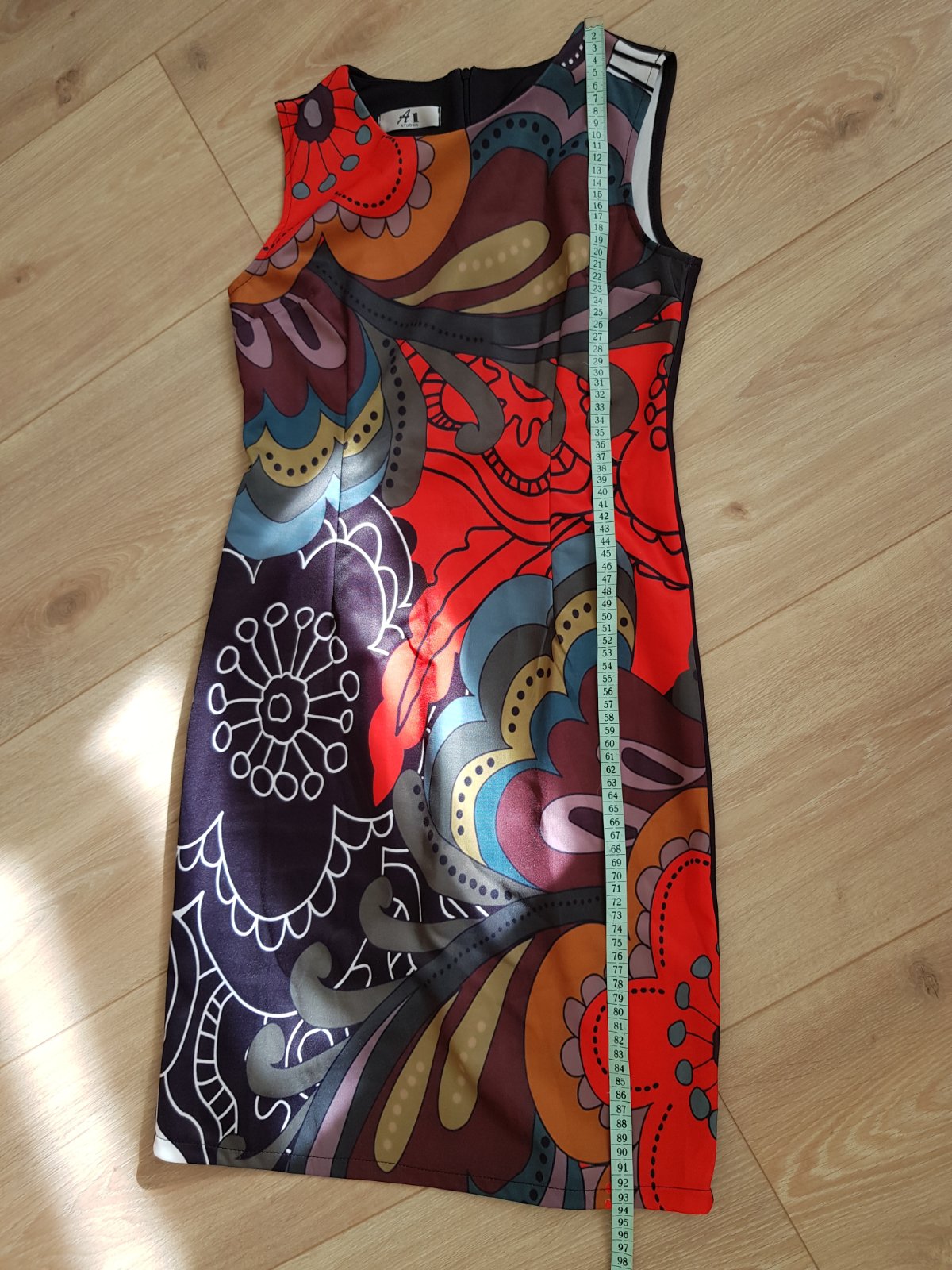 Pestrofarebne puzdrove saty s trendy vzormi.Zapinanie na zips vzadu na chrbate. Na bezne aj slavnostnejsie nosenie.