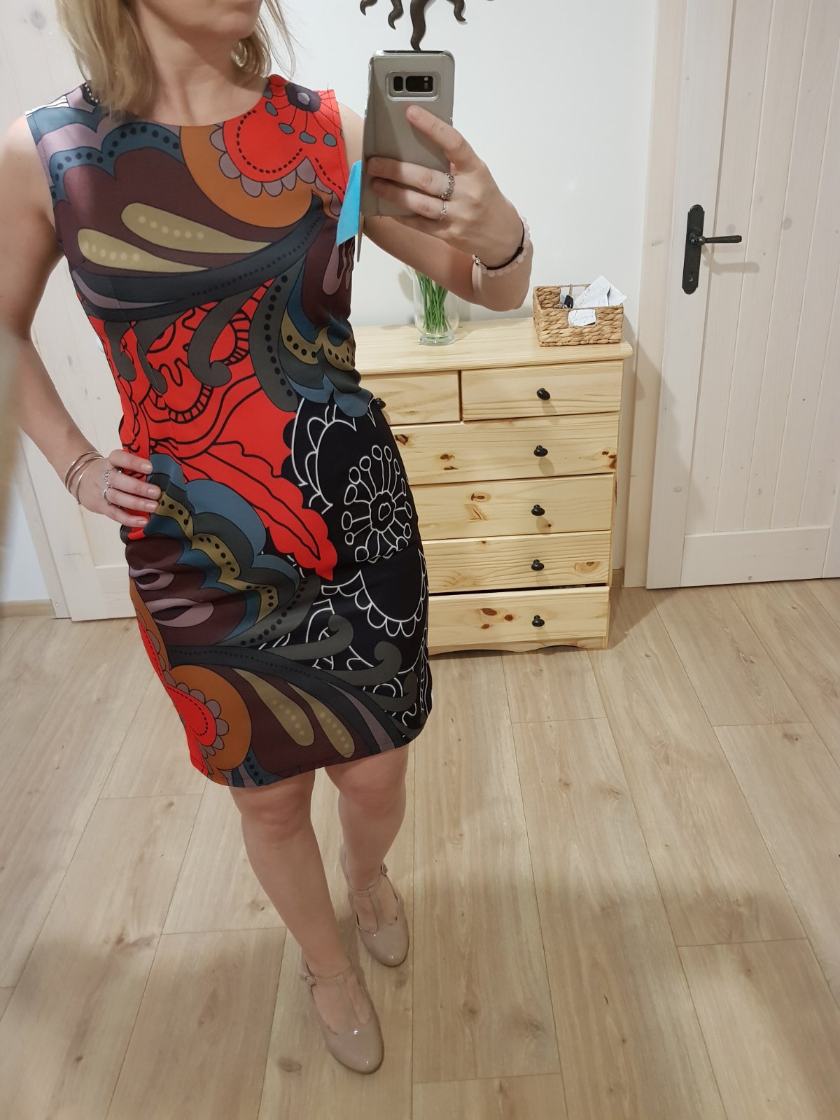Pestrofarebné puzdrove saty.Na bezne aj prílež. n.
