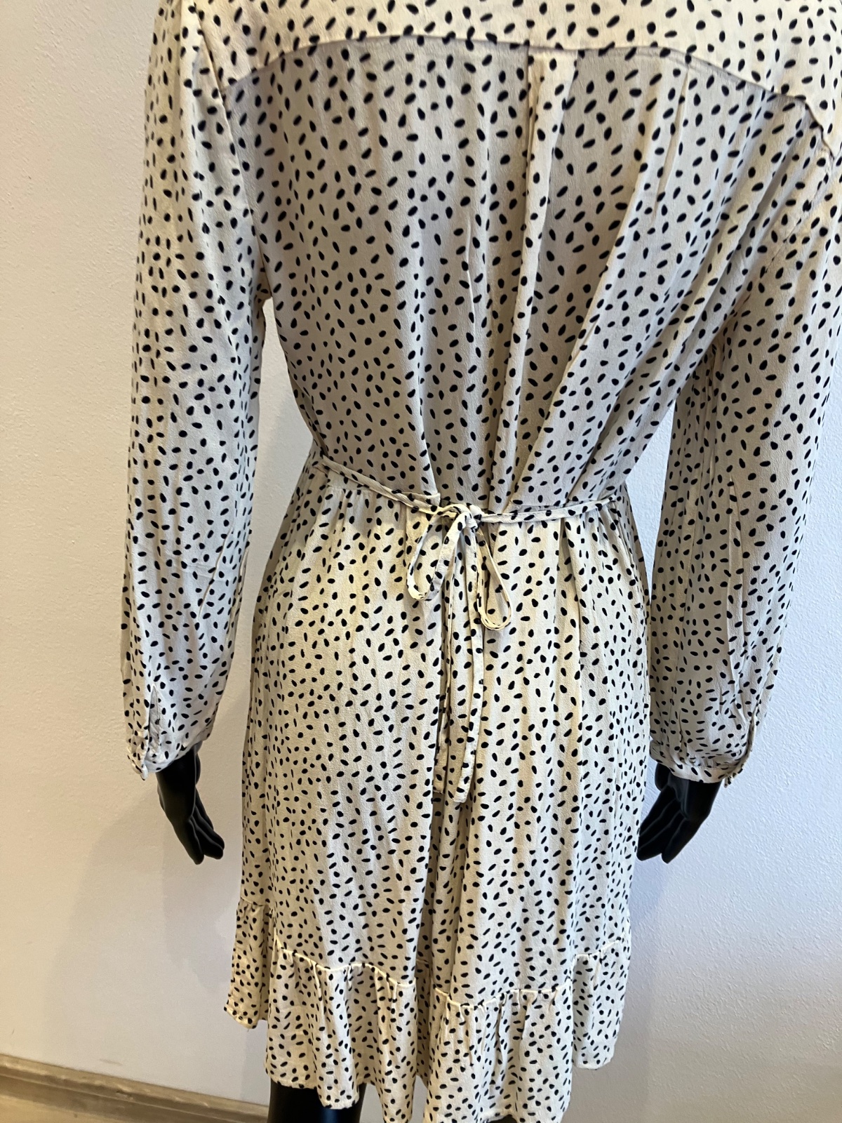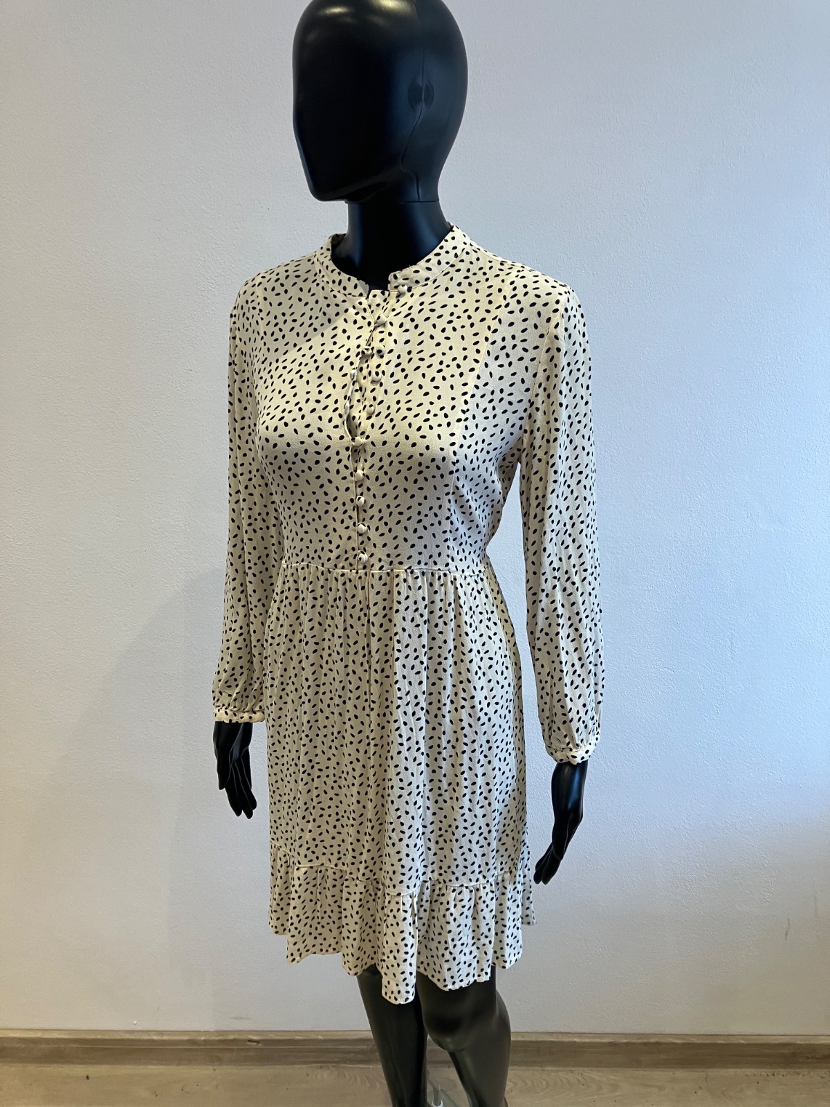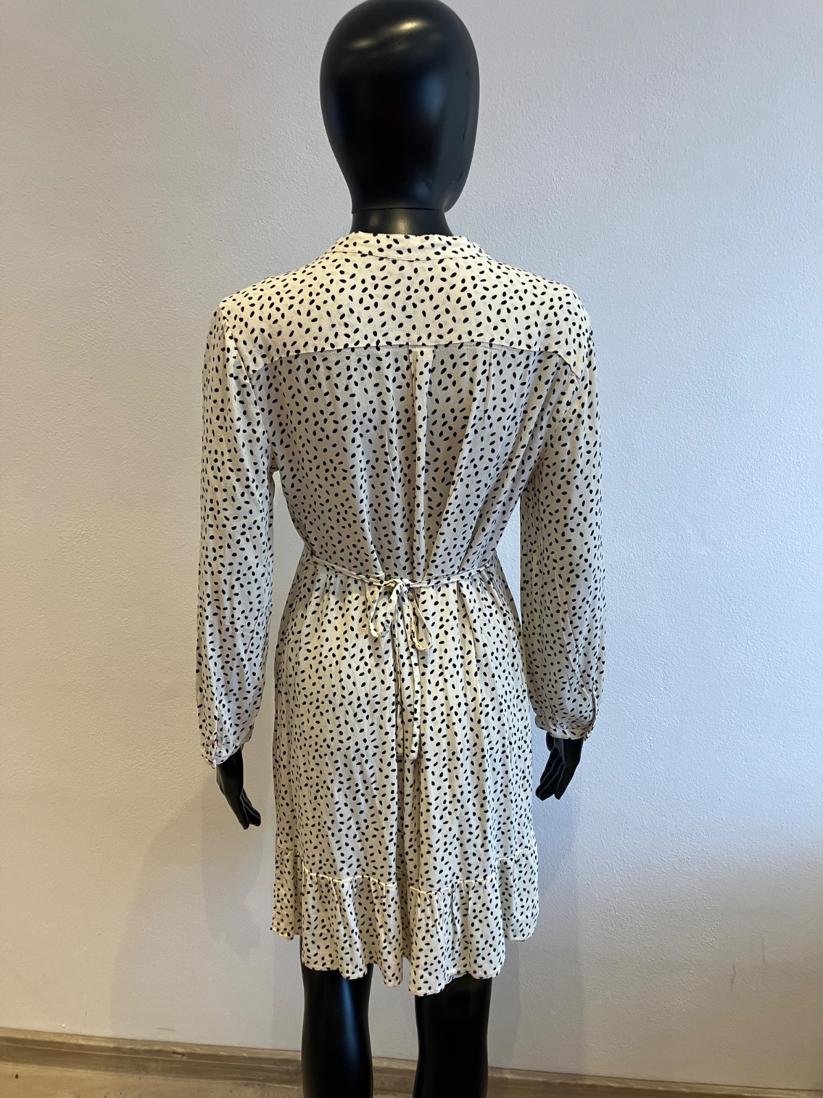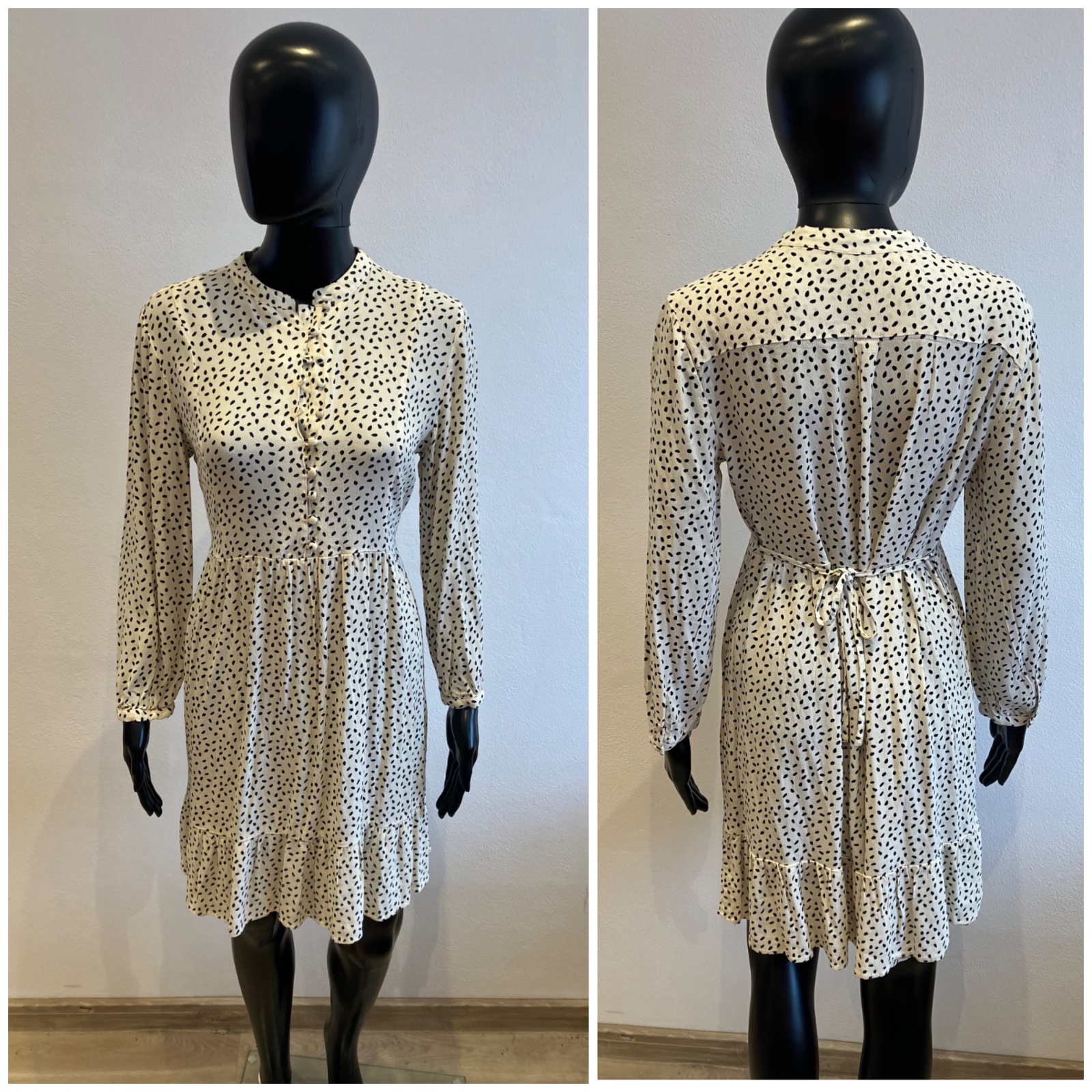 Dámske šaty s dlhým rukávom, zapínanie na gombíky, tenké, jemne elastické, vzadu na zaväzovanie, farba maslovo čierna, materiál 100%viskóza.