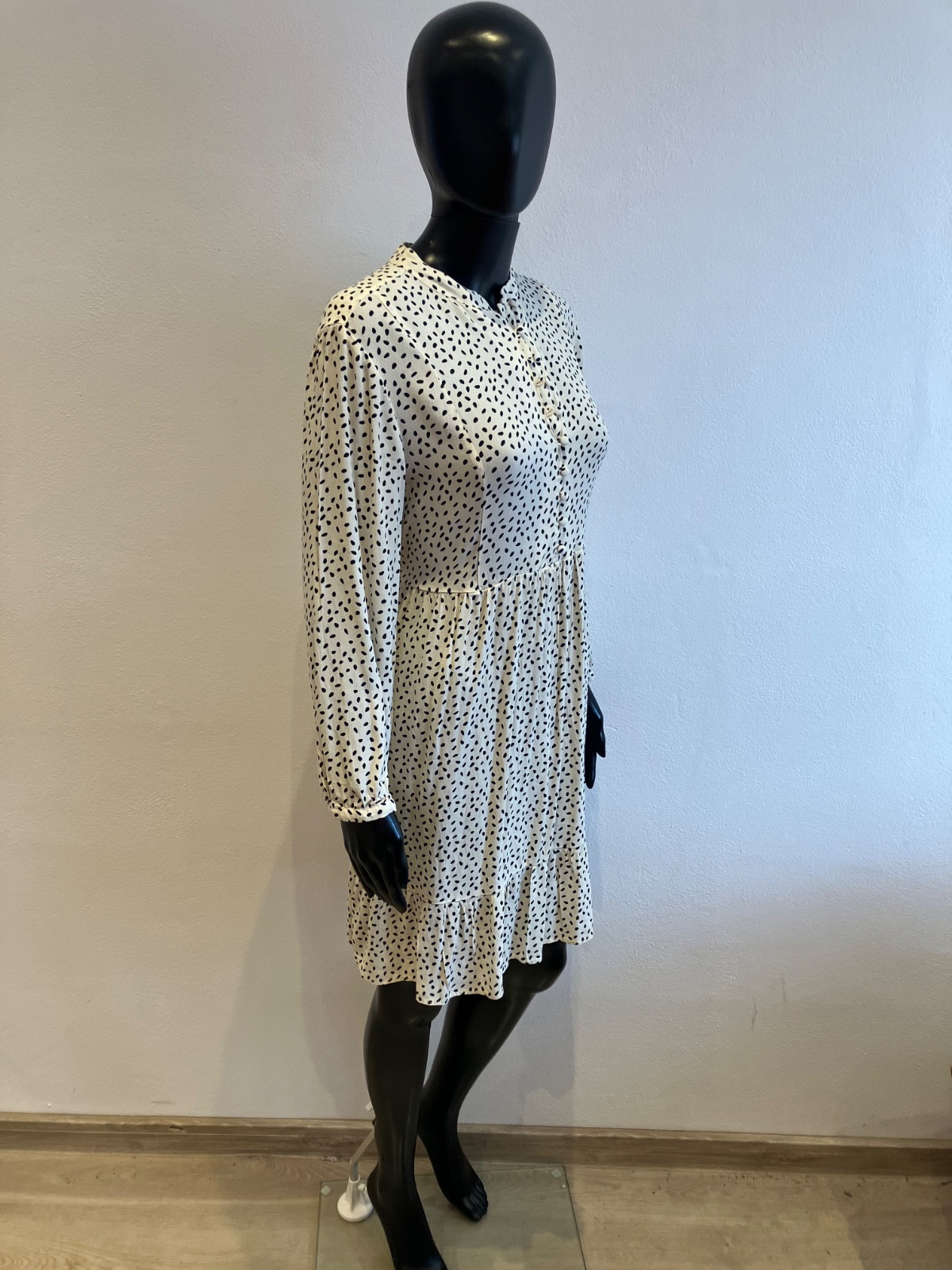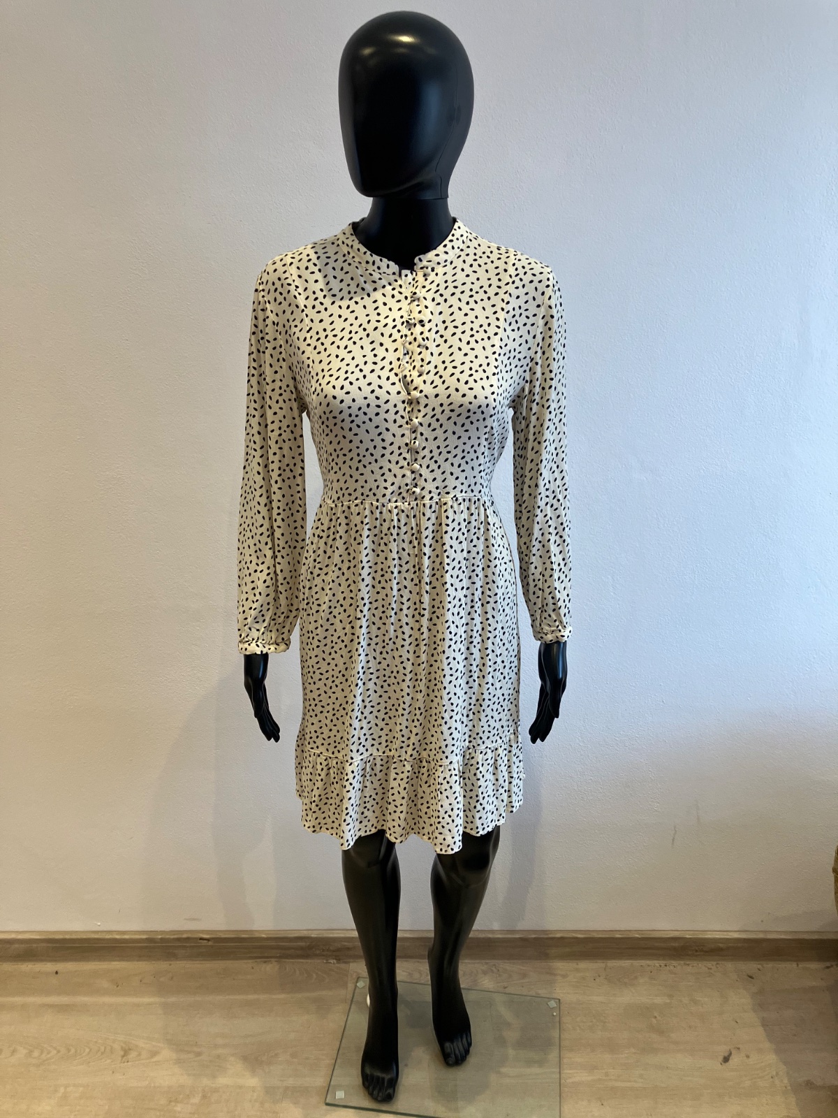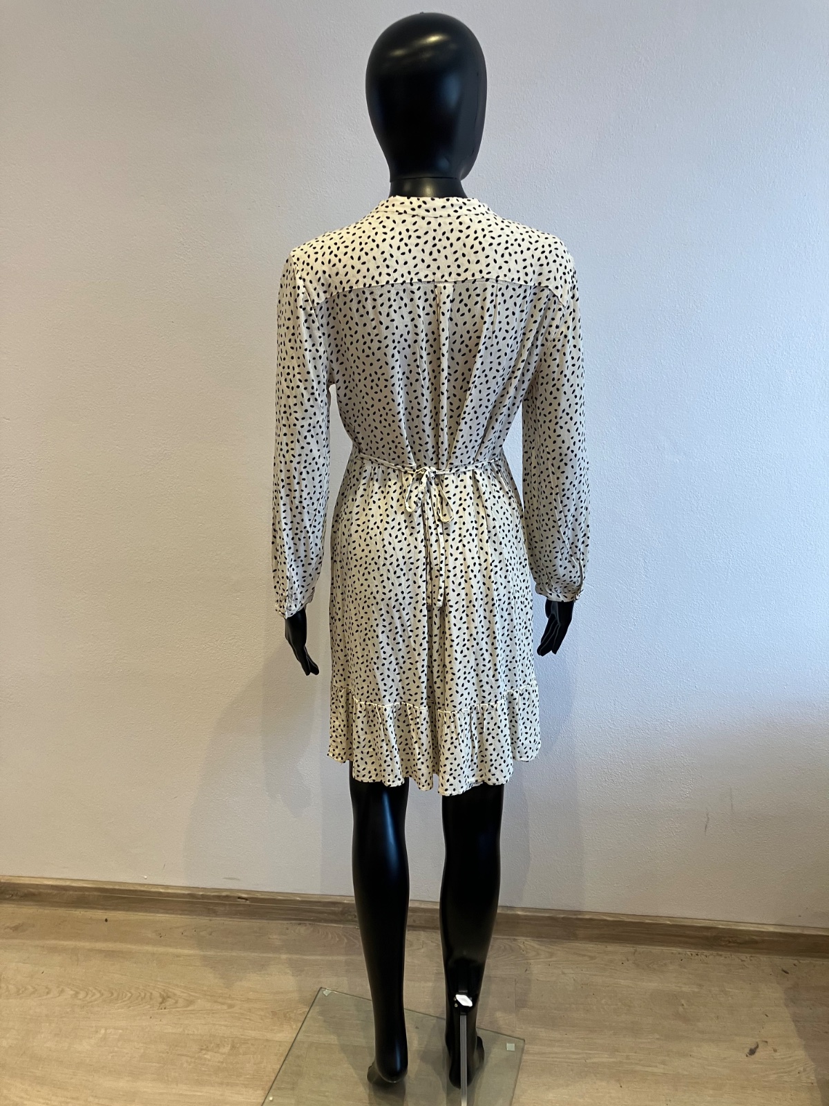 Dámske šaty s dlhým rukávom, zapínanie na gombíky, tenké, jemne elastické, vzadu na zaväzovanie, farba maslovo čierna, materiál 100%viskóza.