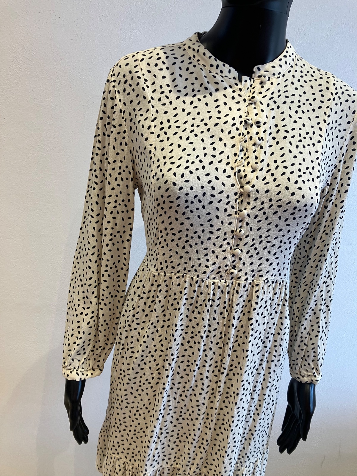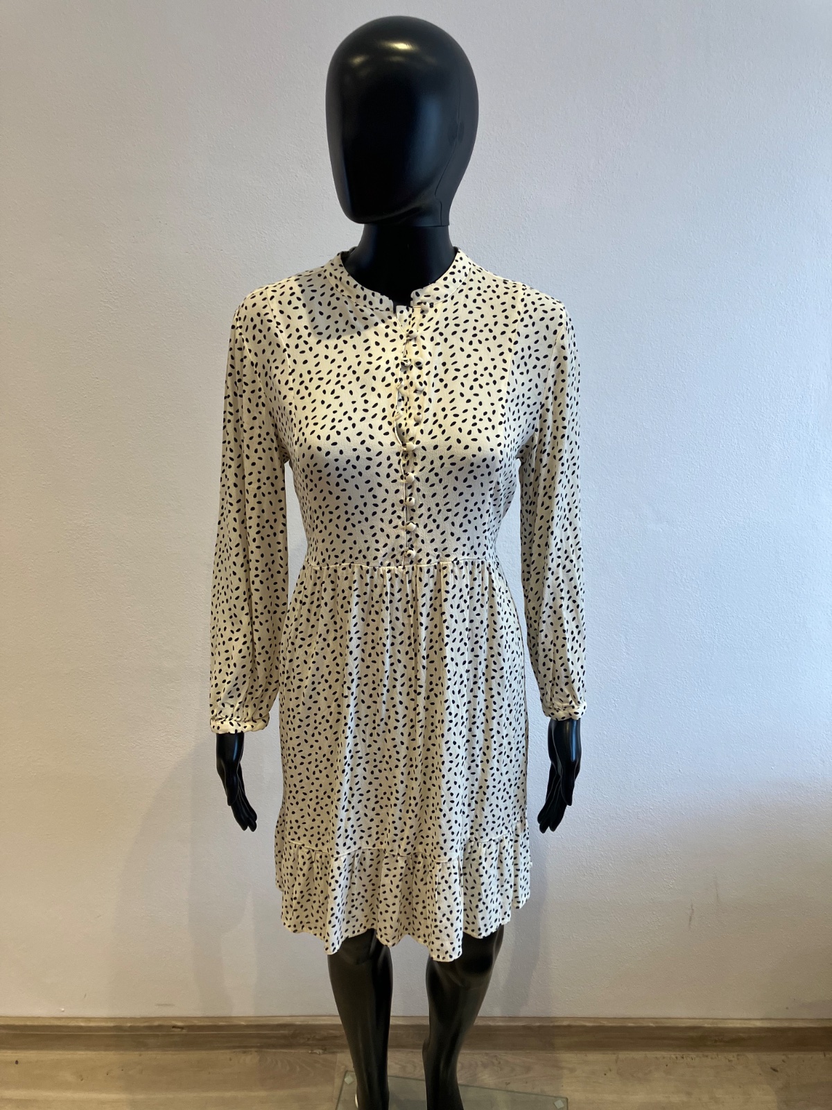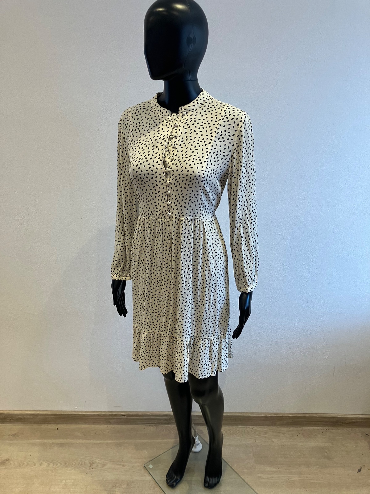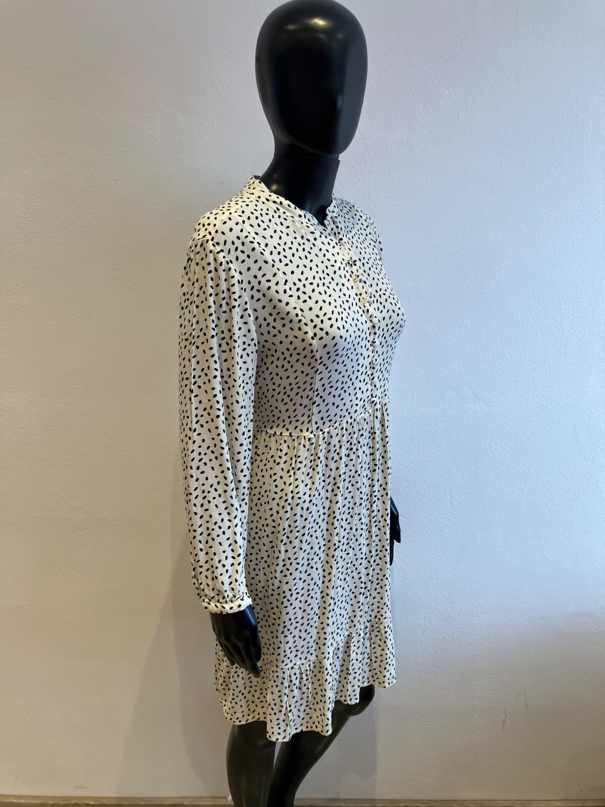 Dámske šaty s dlhým rukávom, zapínanie na gombíky, tenké, jemne elastické, vzadu na zaväzovanie, farba maslovo čierna, materiál 100%viskóza.