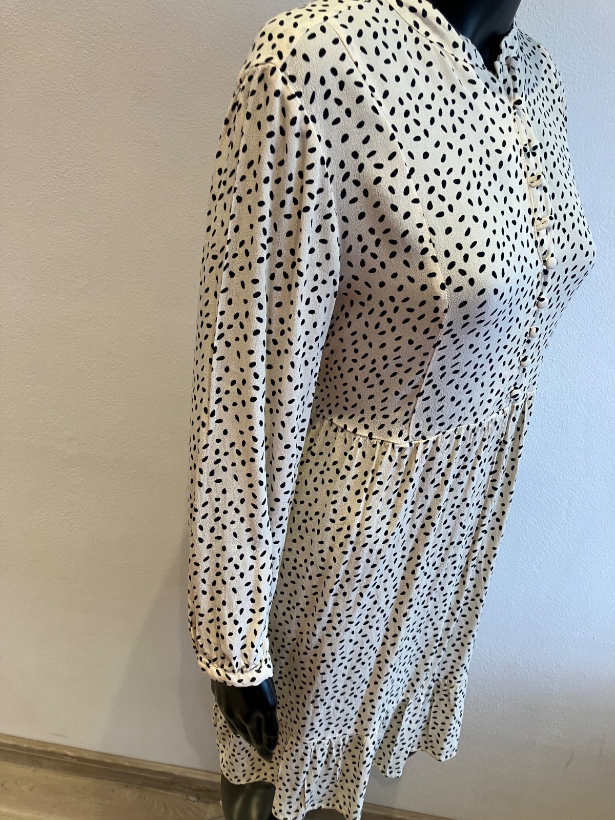 ROZMERY: dĺžka: 89,5cm, od pazuchy dĺžka dole: 64cm, pod pazuchami meraná šírka: 2x49cm - 2x58cm, dĺžka rukáv od krku: 64cm, dĺžka rukáv: 51cm.
