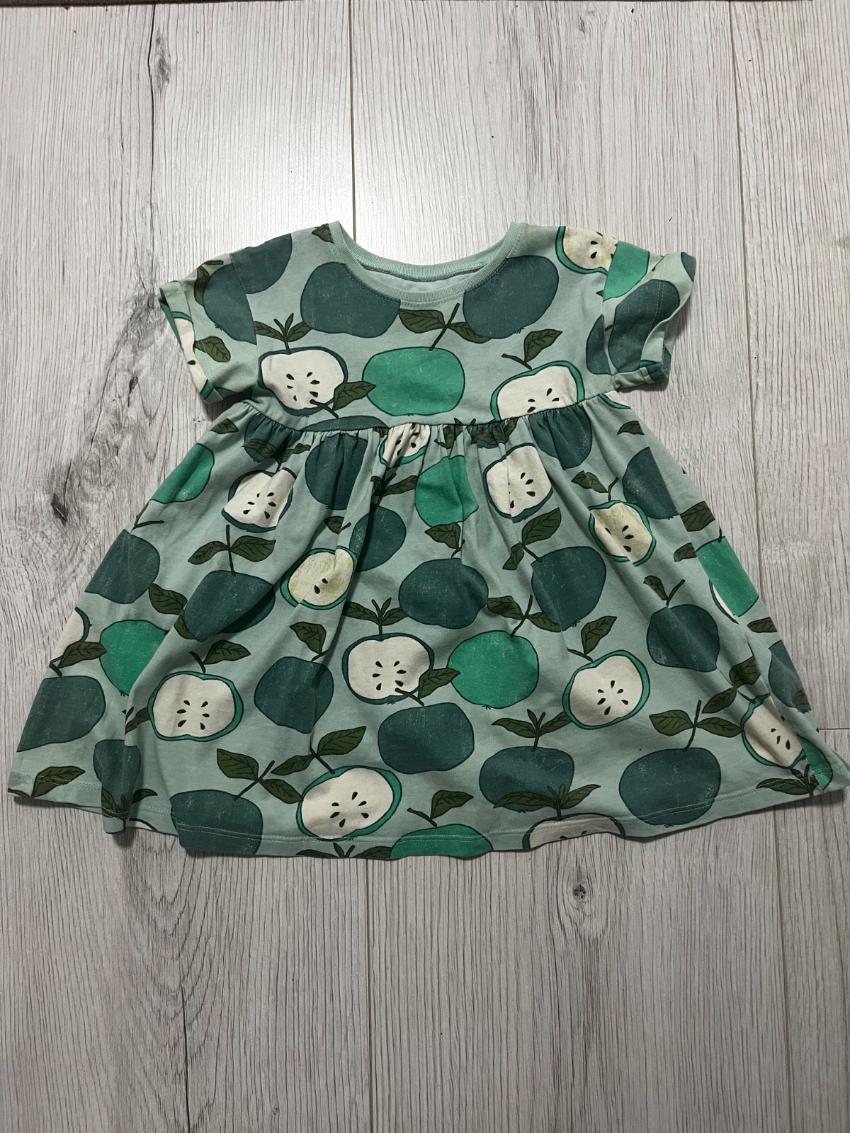 Predám zelené šaty so vzorom jabĺčok. Značka: Next, veľkosť: 92 (1,5-2 roky).