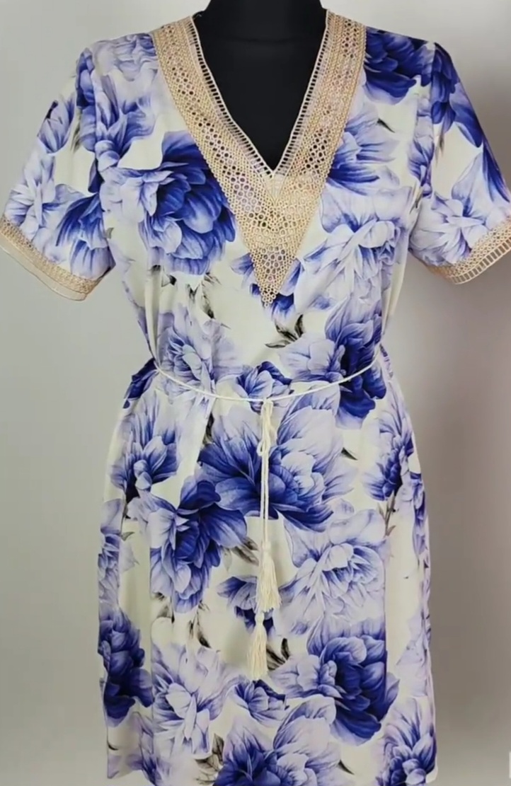 Šaty sú ľahký vzdušný materiál.sedia od S po l v pase sa dá previazat snurkovy opasok.cena bez posty.