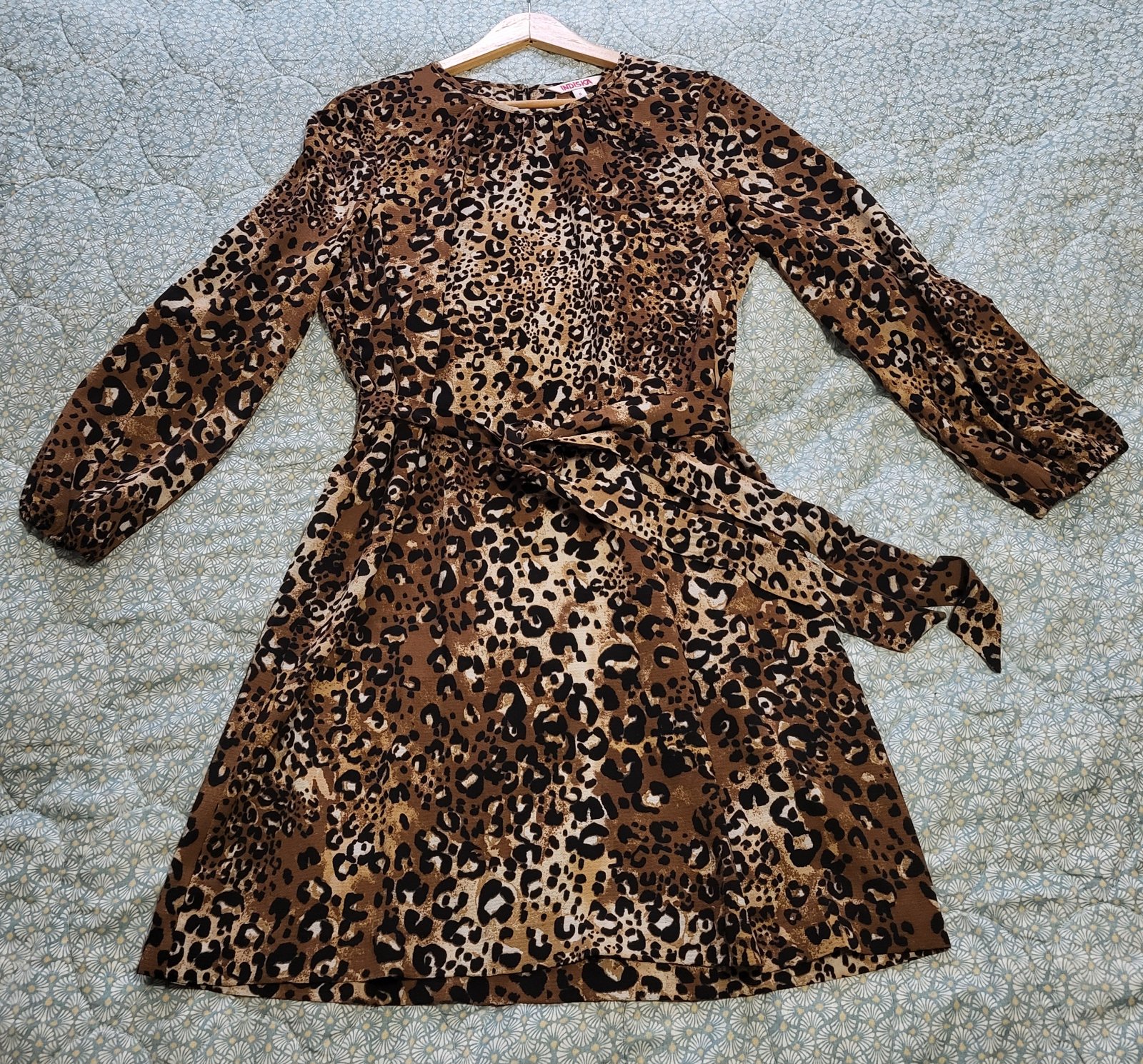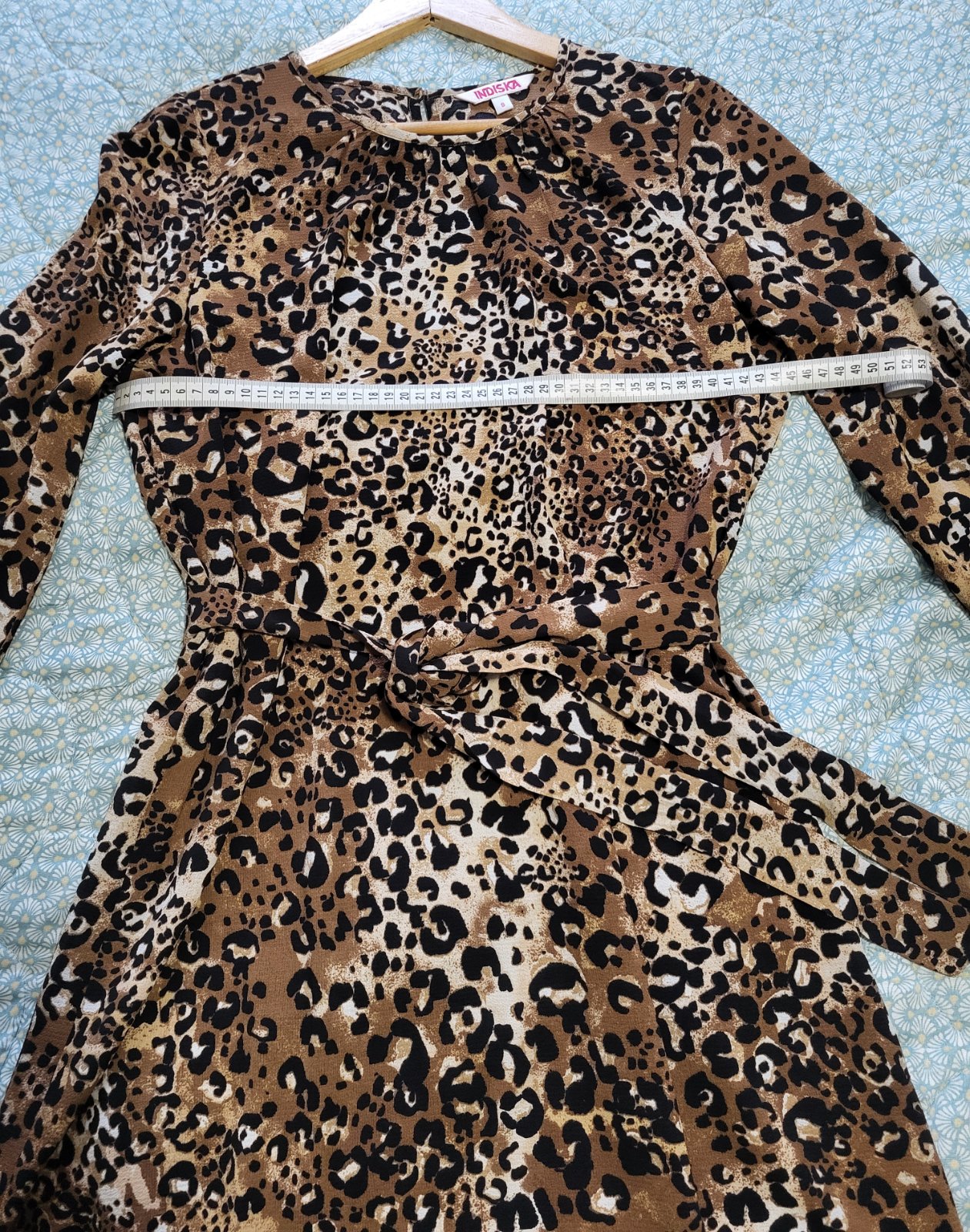 retro super stav skoro nenosené dlžka-109cm, pás-76cm, dl. rukáva od krku-63cm (252, bledohnedá krabica, gar 3, spojené)