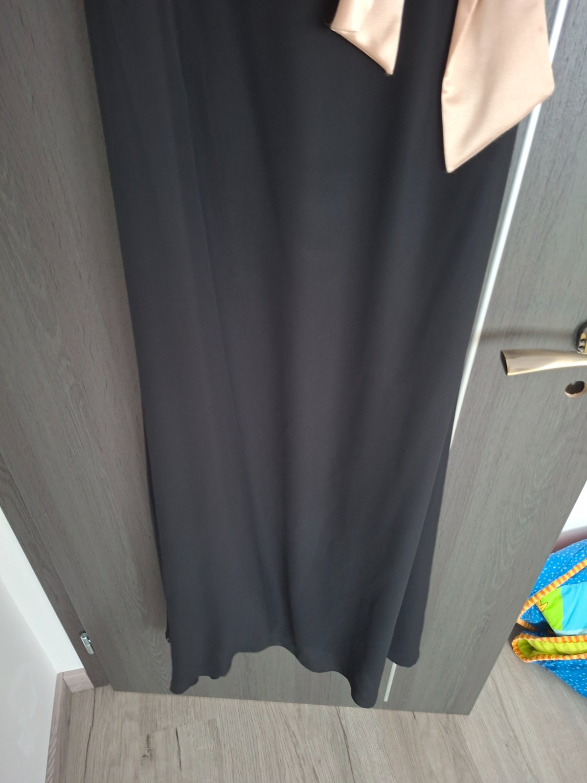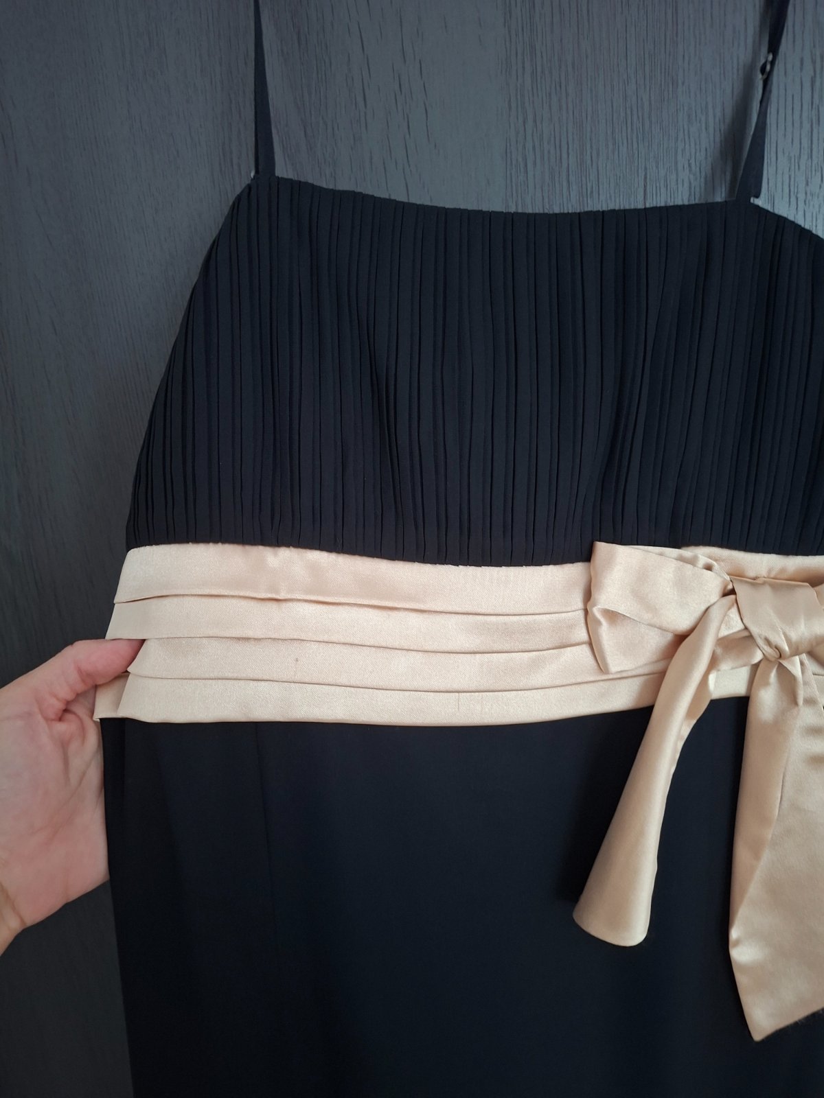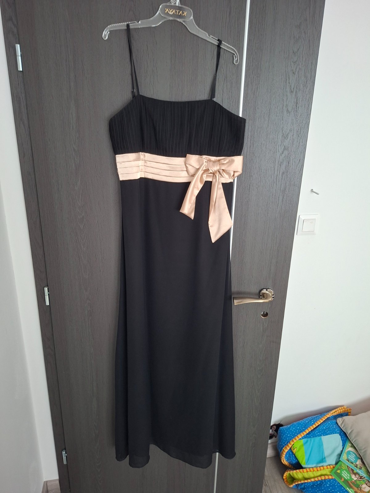 Čierne spoločenské šaty so zlatou stuhou