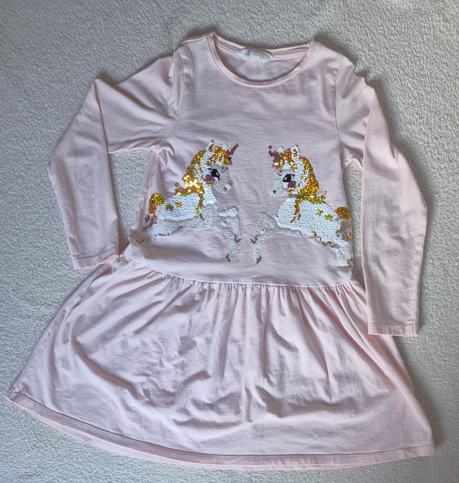 Prechodné tenšie bavlnené šaty s jednorožcami zn. H&M 122/128