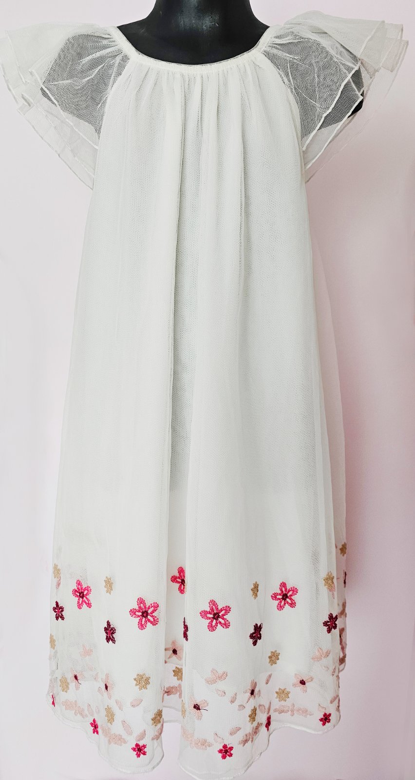Výborný stav. Dĺžka 76 cm, šírka pod pazuchami 44 x2 cm. Šité v troch v vrstvách látok (2x vrstva tylová, 1x jemná podšívka).