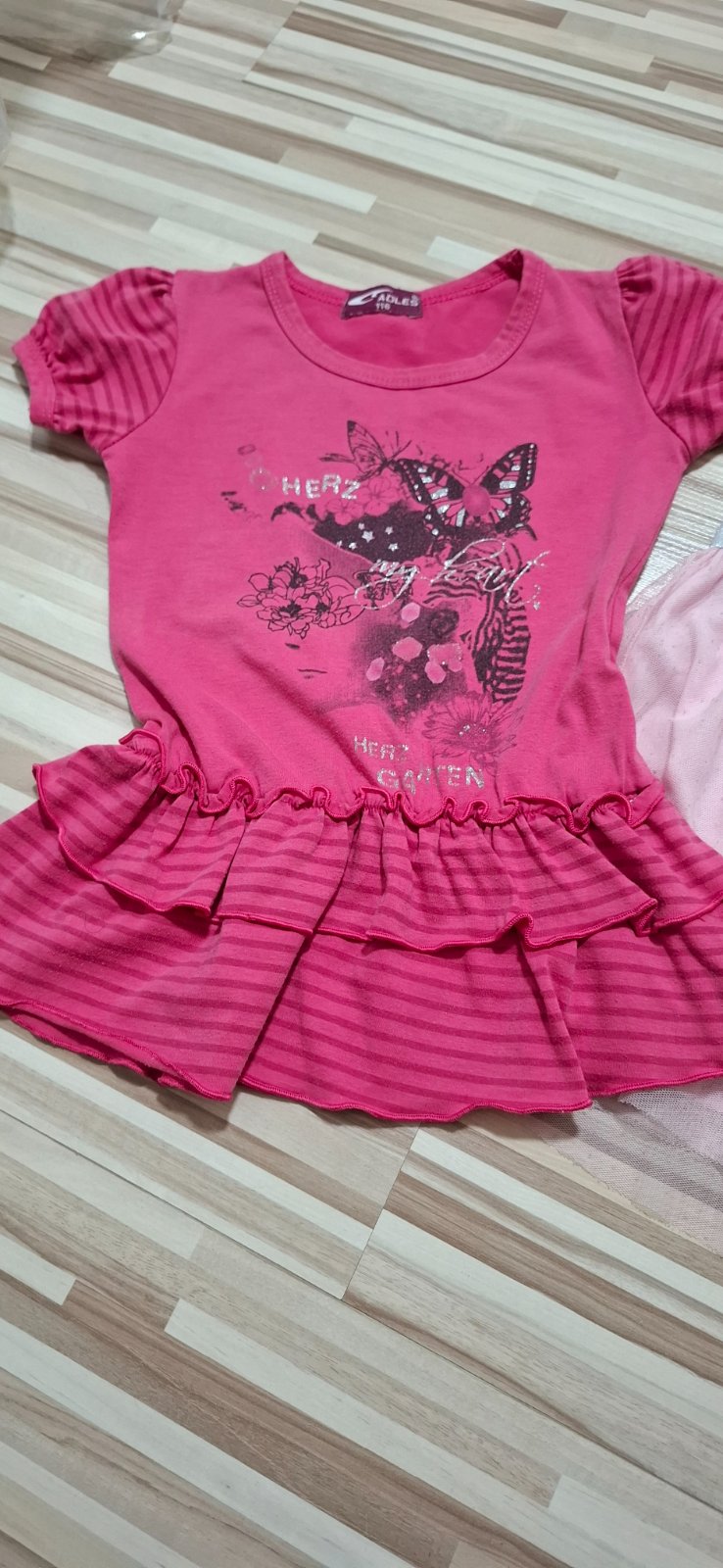 pekná tunika, nositelná aj ako šaty. Písaná velk. 116, nositelná skôr. Vzadu zaujímavo riešená, priesvitný chrátik v strede,
