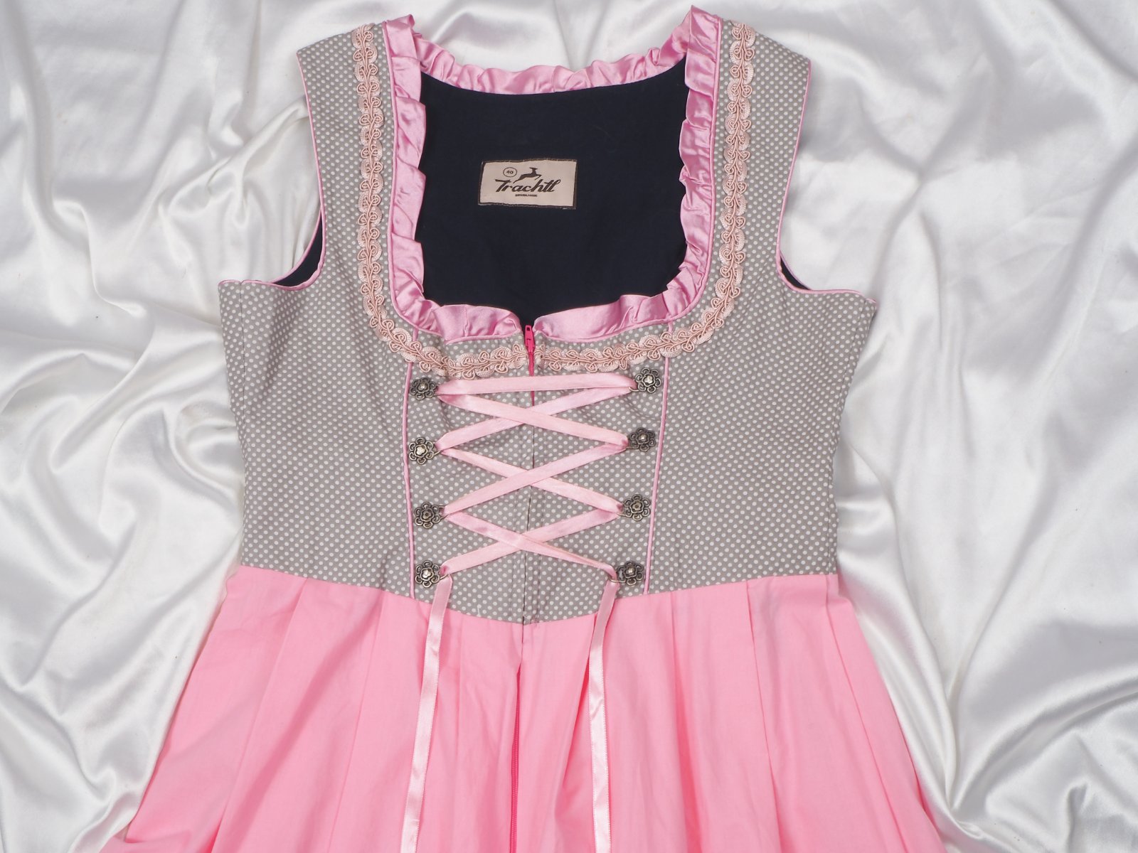 Kvalitné krojové šaty, sivo-ružovej farby, zapínanie vpredu na zips, super stav.