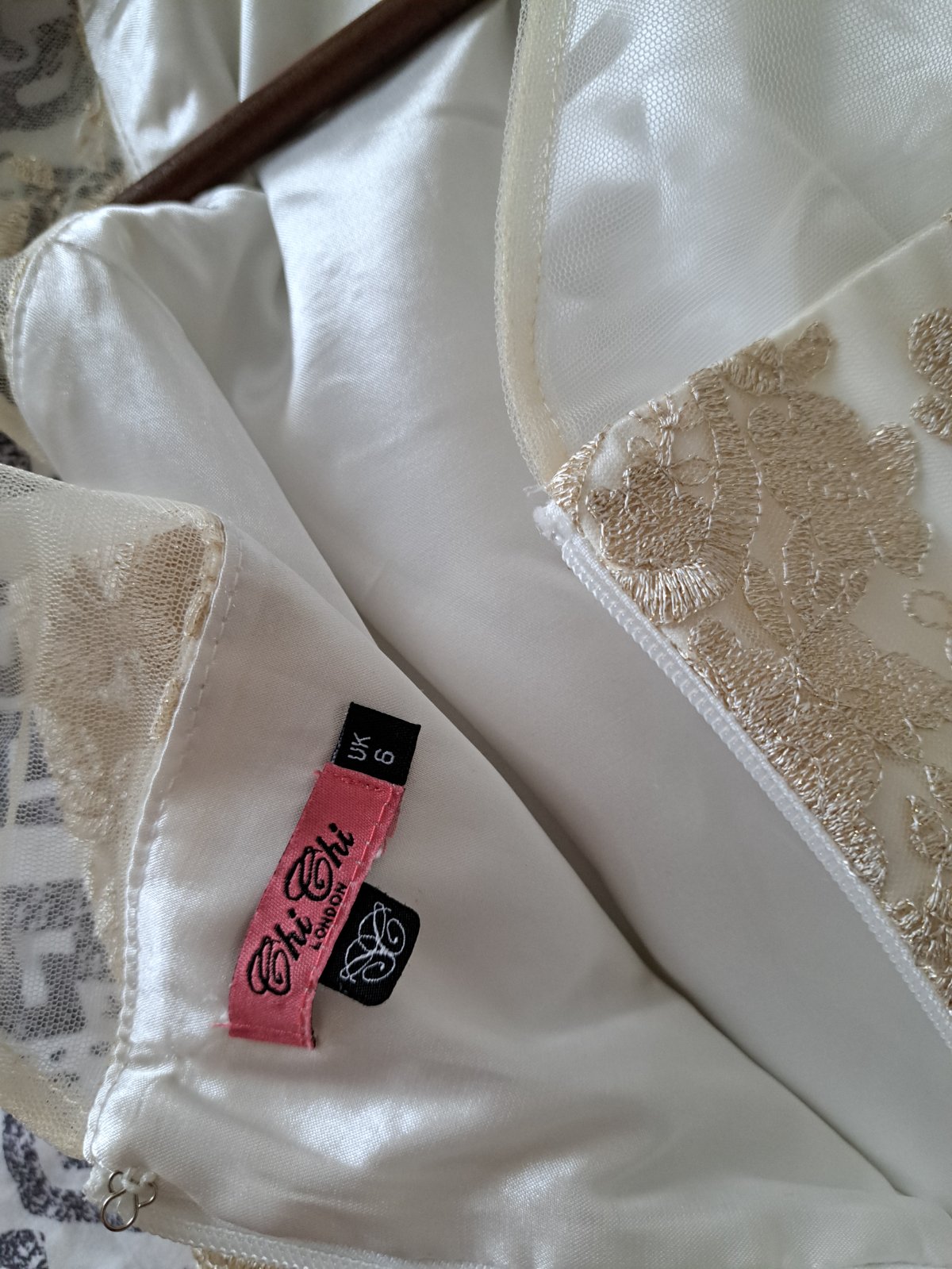 Nádherné šaty vhodné na oslavu, svadbu... Oblečené 2x, su v 100% stave. Veľmi pekne sedia. Dĺžka: 102cm, pás: 33cm, prsia: 43cm. Značka Chi Chi London.