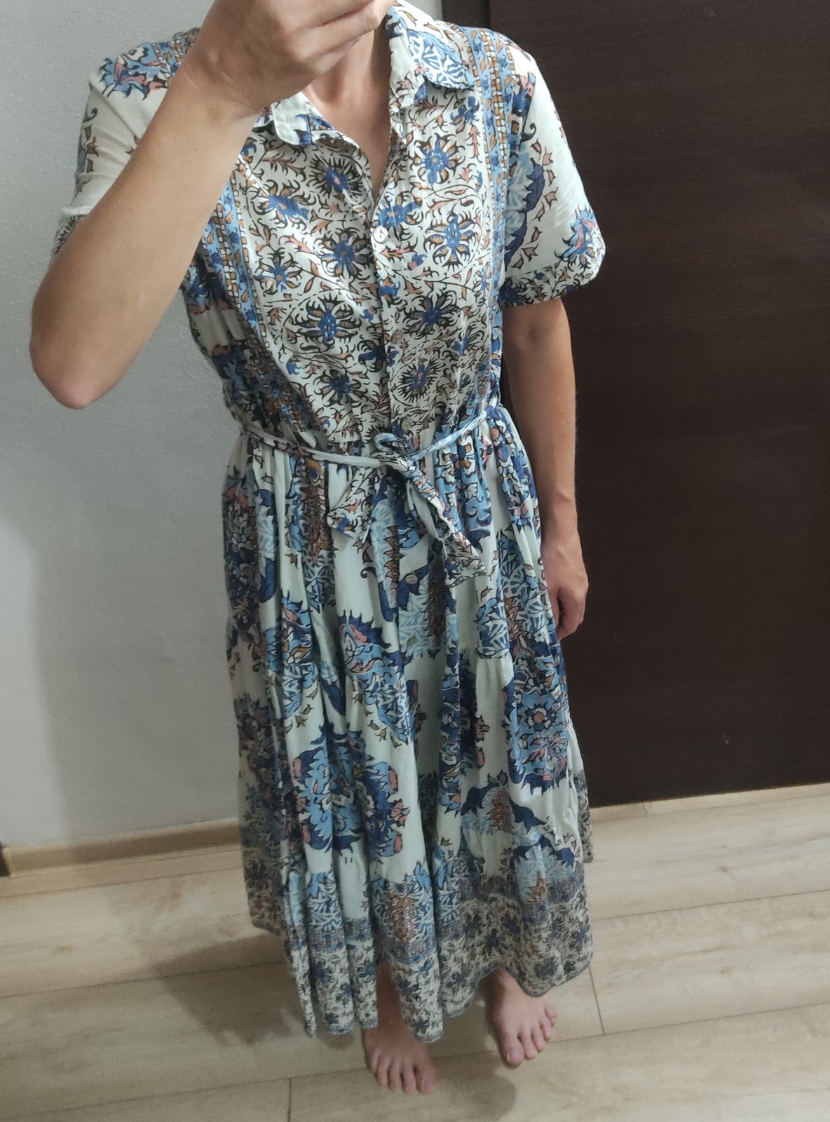 šaty asi 3x oblečené, kúpené minulý rok, boli skrátené na výšku 169 cm, su mi po kotniky, no už mi len stoja v skrini