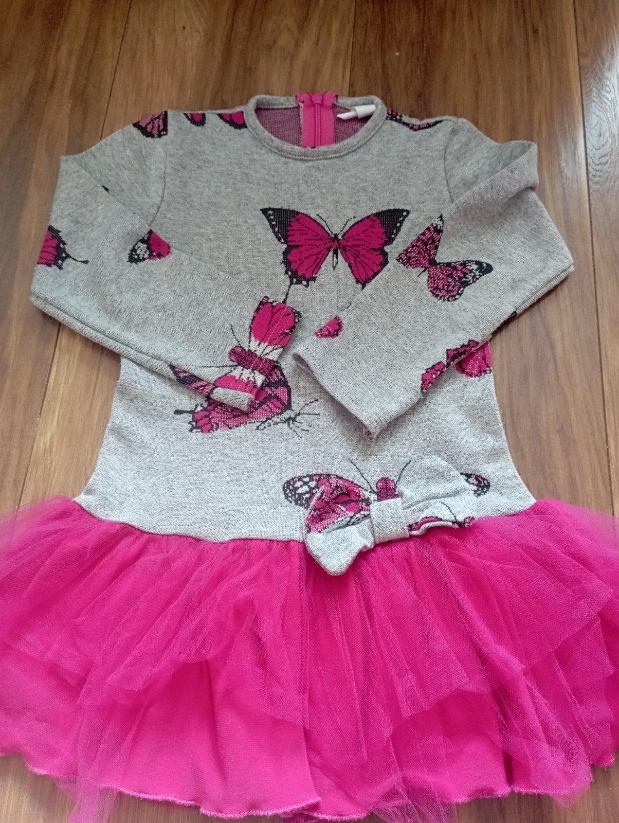 Nosené veľmi pekný stav ,dcéra ich mala aj na fotení ,teplejší materiál ,veľkosť uvedená 116 ale sedia na 104.Kupene v butiku