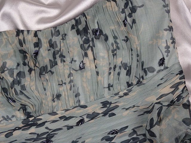 Luxusné hodvábne šaty bledozeleno-béžovej farby, s potlačou, materiál 100% hodváb, podšité, na boku zips, super stav.