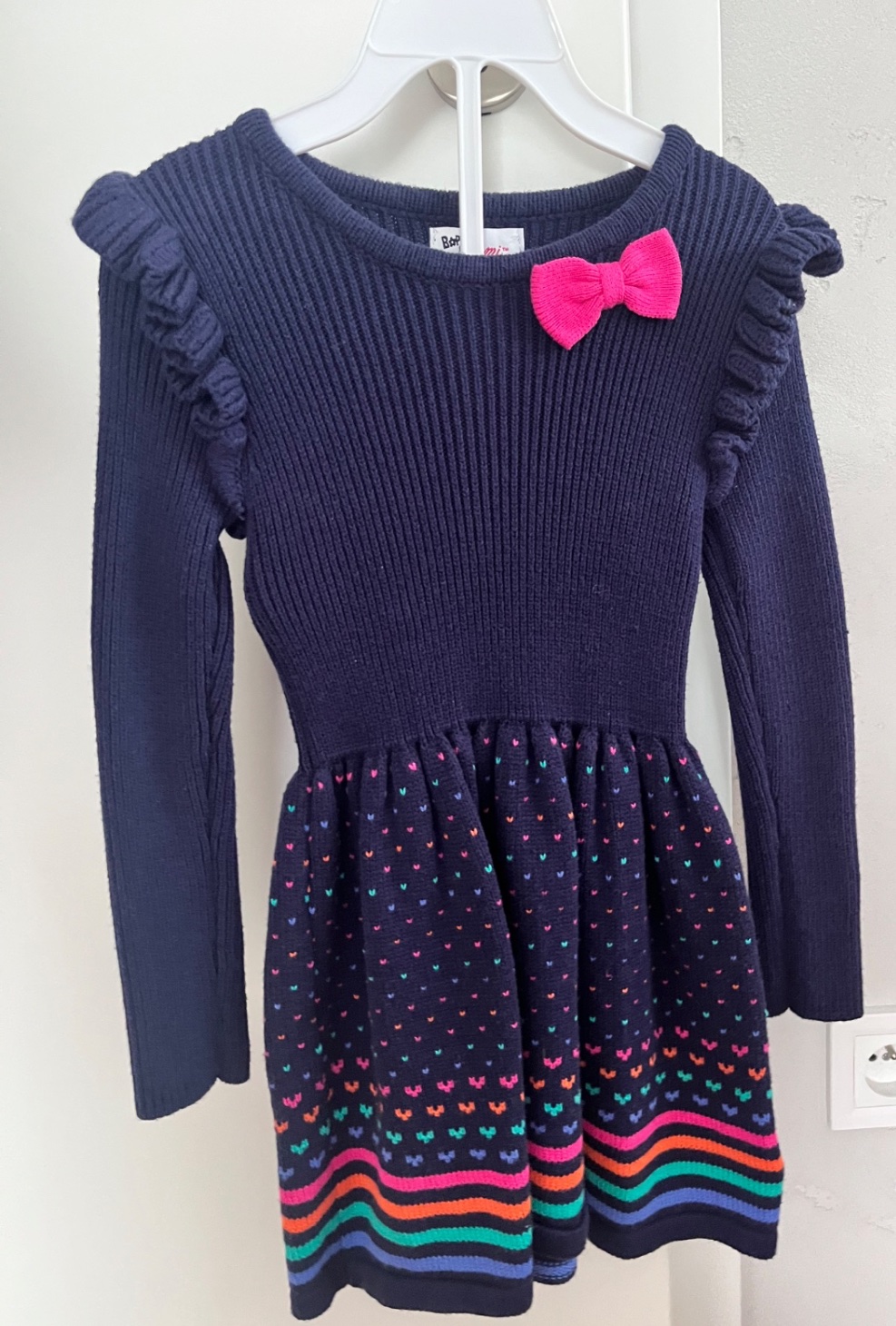 Tmavomodre bavlnene saty s dinosaurami, zn. Marks&Spencer, velkost 104. Malinko nosene.