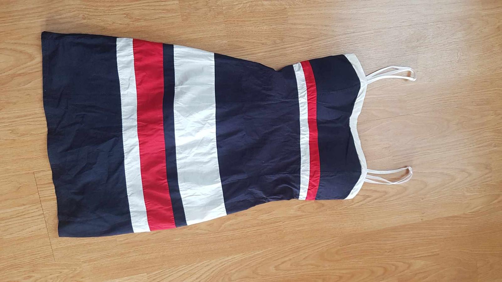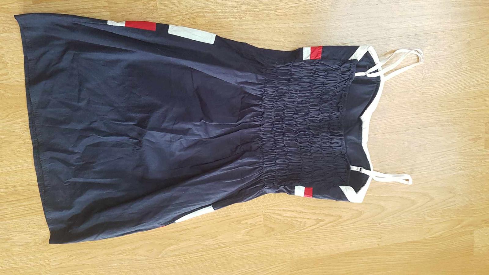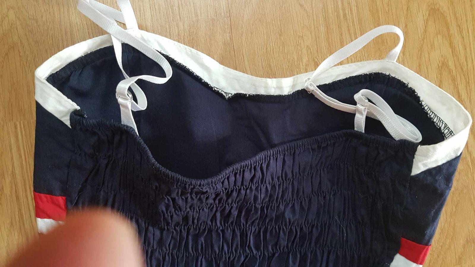 šaty vo výbornom stave, v zadu žabkovanie - elastické na chrbte, regulovateľné ramienka. V oblasti pŕs je vystuženie. Materiál je bavlna.