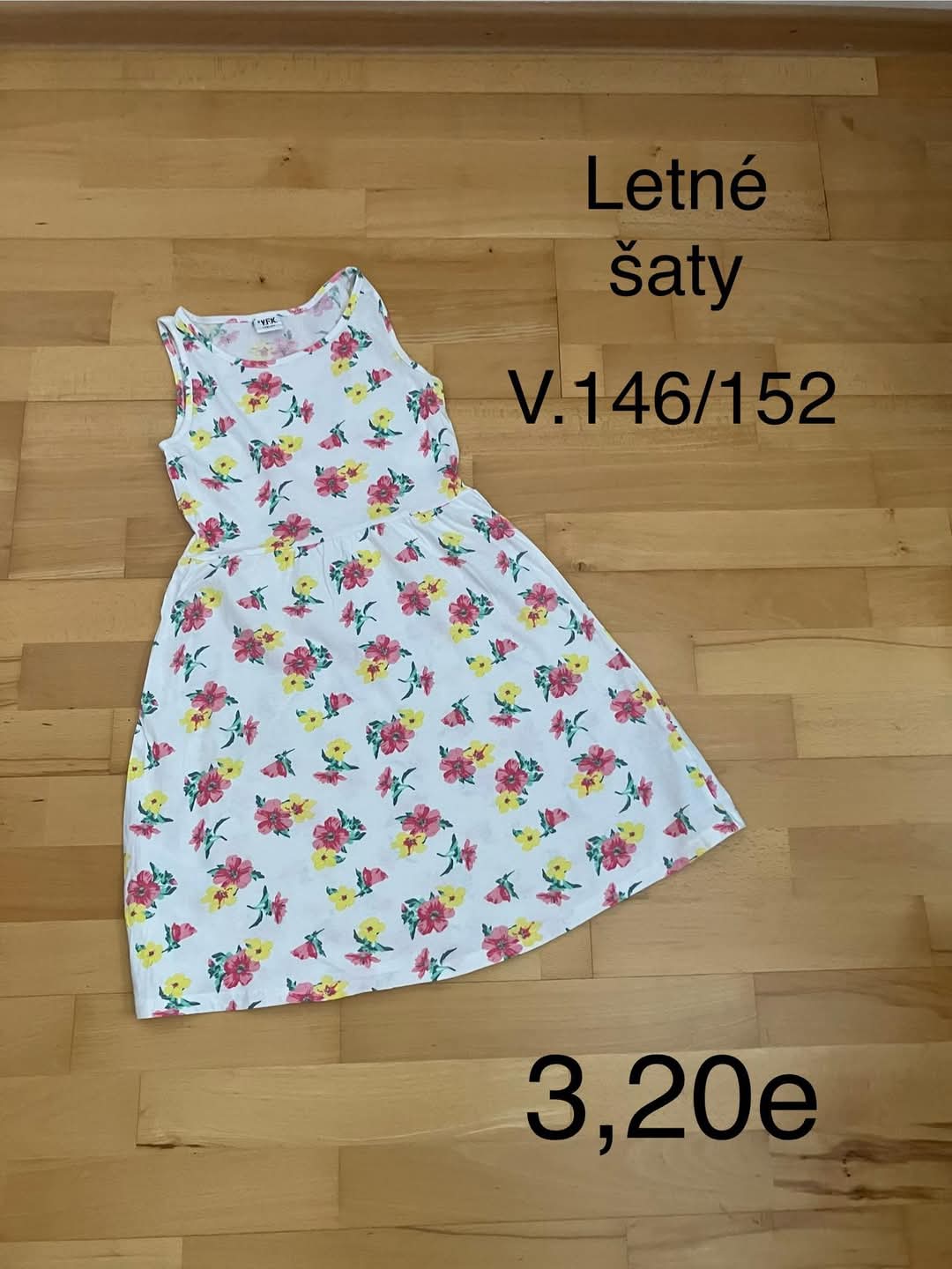 Krásne letné šaty vpredu s mašľou pre dievčatko nepoškodené nosené príležitostne. Veľmi dobrý stav Rozmery: celková dĺžka 77cm, v páse 2x35cm, dĺžka horného dielu 35cm. Cena je bez poštovného.