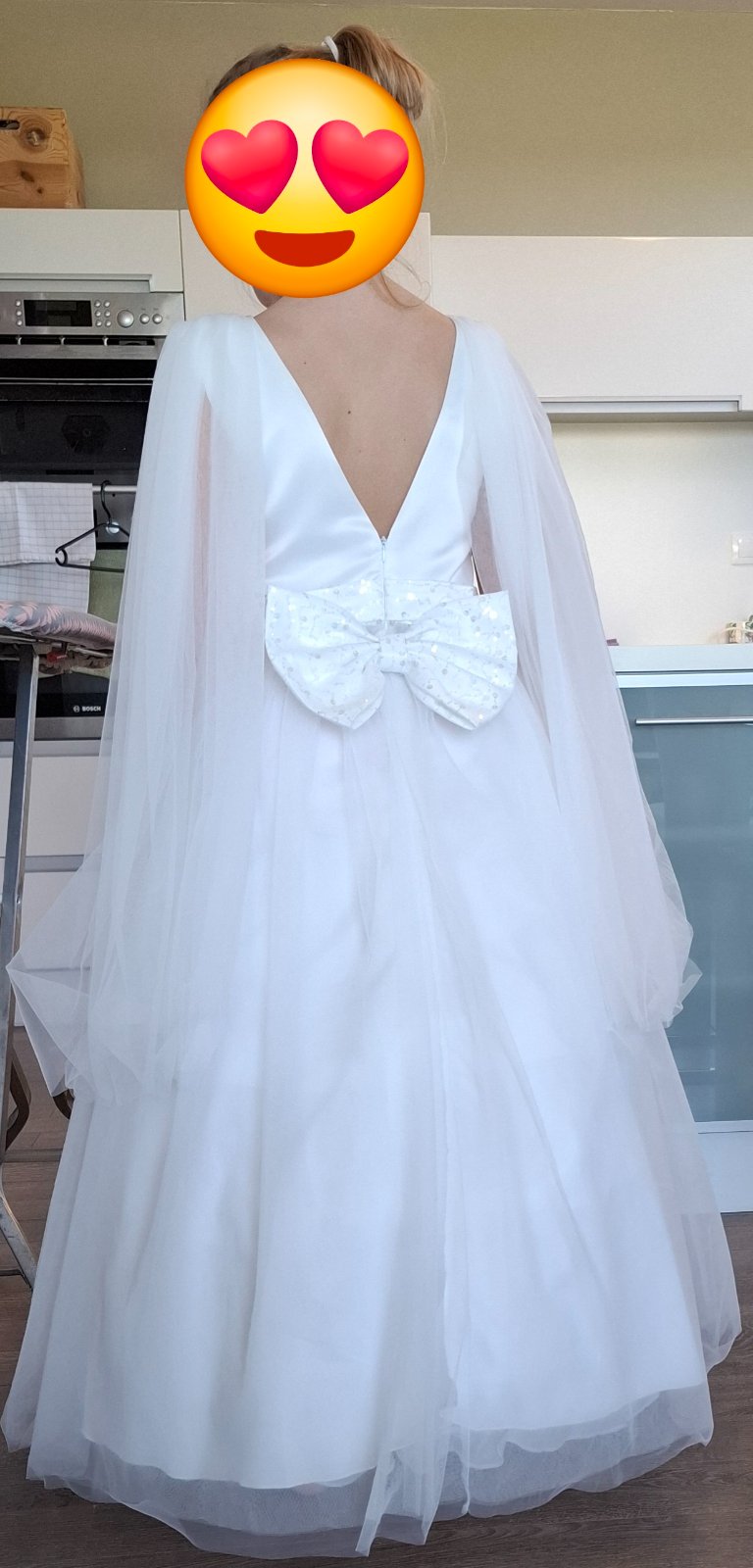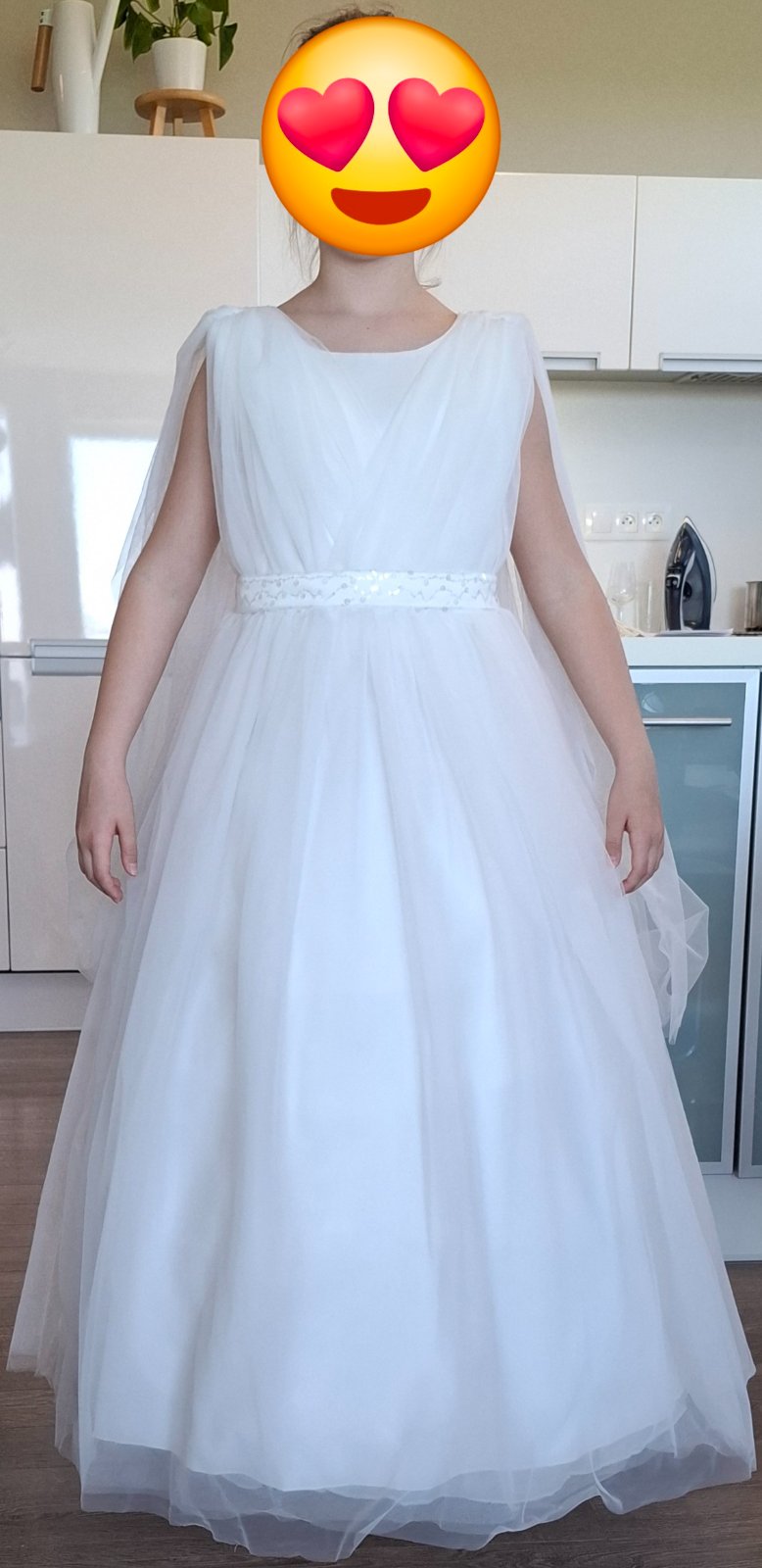 Predám šaty na 1. Sv. Prijímanie. Kupované boli cez SHEIN. Trochu zuzovane na drieku. Hustá nepriesvitna spodnicka k tomu. Plus svetrík, rukavicky a motýle do vlasov.
