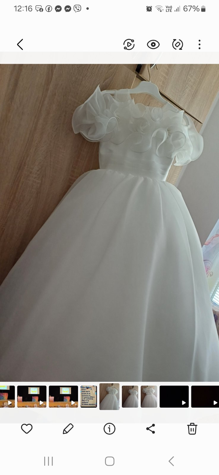 Kvalitné šaty na prvé sväté prijímanie zo svadobného salónu (foto nižšie). Vzadu je zapísanie na zip a mašľu, takže sa dajú pekne prispôsobiť a mašľa pôsobí veľmi pekným dojmom. Majú krátke rukávik...