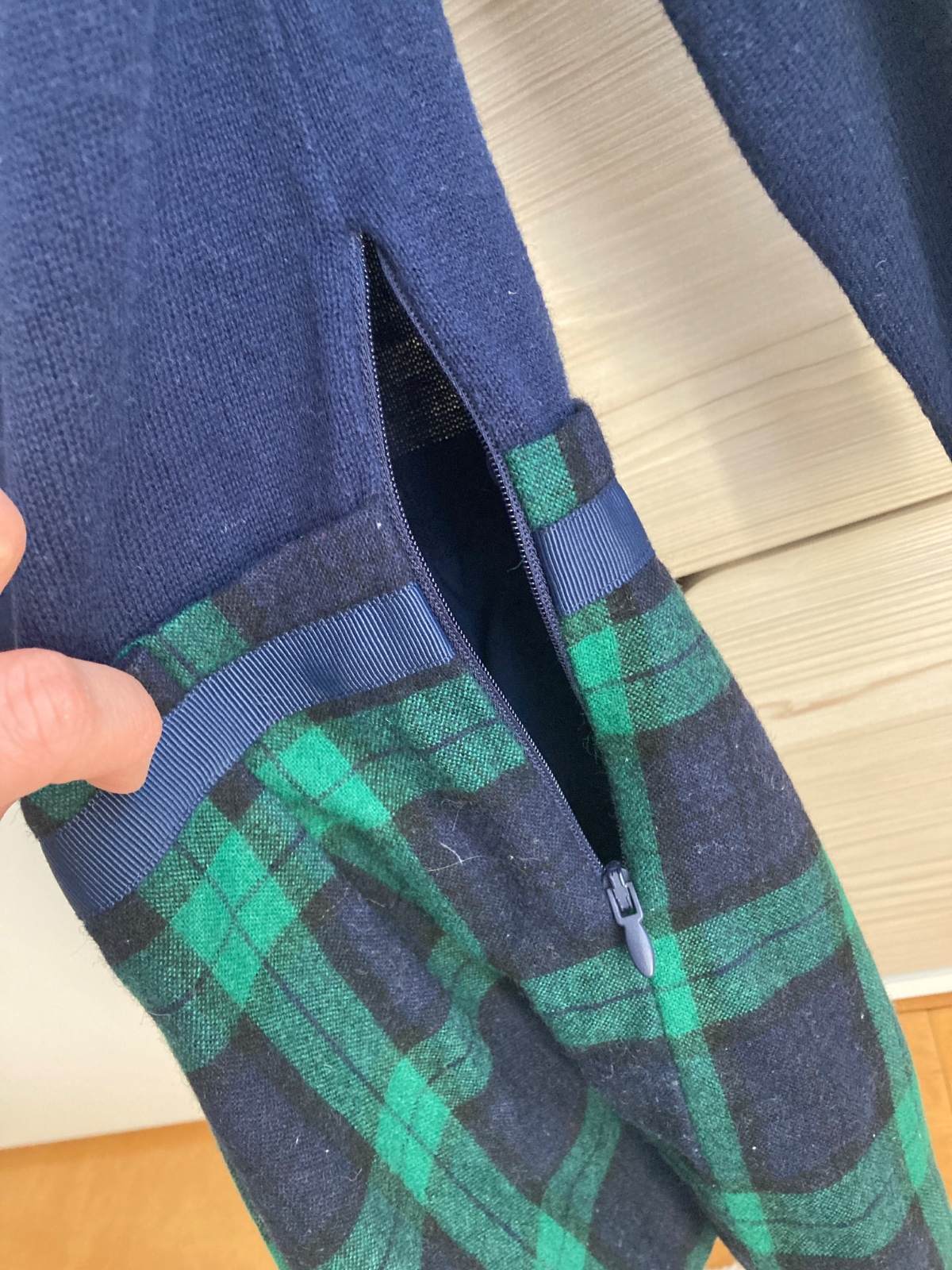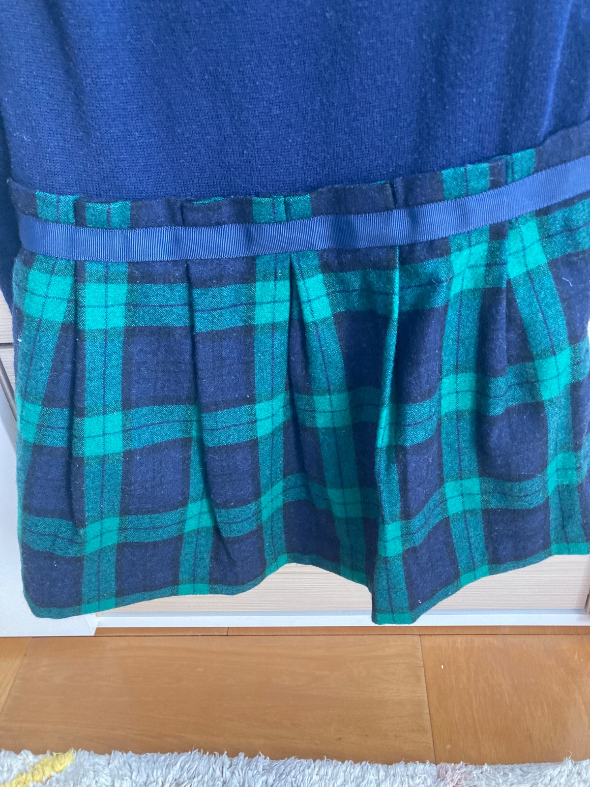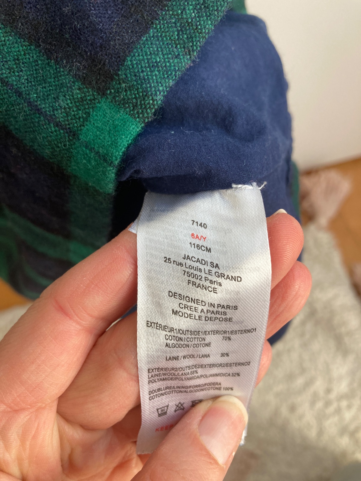 Ponukam na predaj pletene saty Jacadi. Tmavo modry vŕšok je kombinovaný s karovanou zelenou suknou. Suknička a vŕšok sú oddelene akoby mašľou. Na jednom ramene ozdobná maslicka, pod ňou zapínanie na dva cvočky, uľahčuje obliekanie. Tiež na jednom boku je všitý zips. Saty sú podľa mňa vhodne aj na vianočné obdobie. Teple. Bez poškodení či známok nosenia, ako nové. Visacka udava velkost 116, dajú sa nosiť ako 116 a aj ako menšia 122.