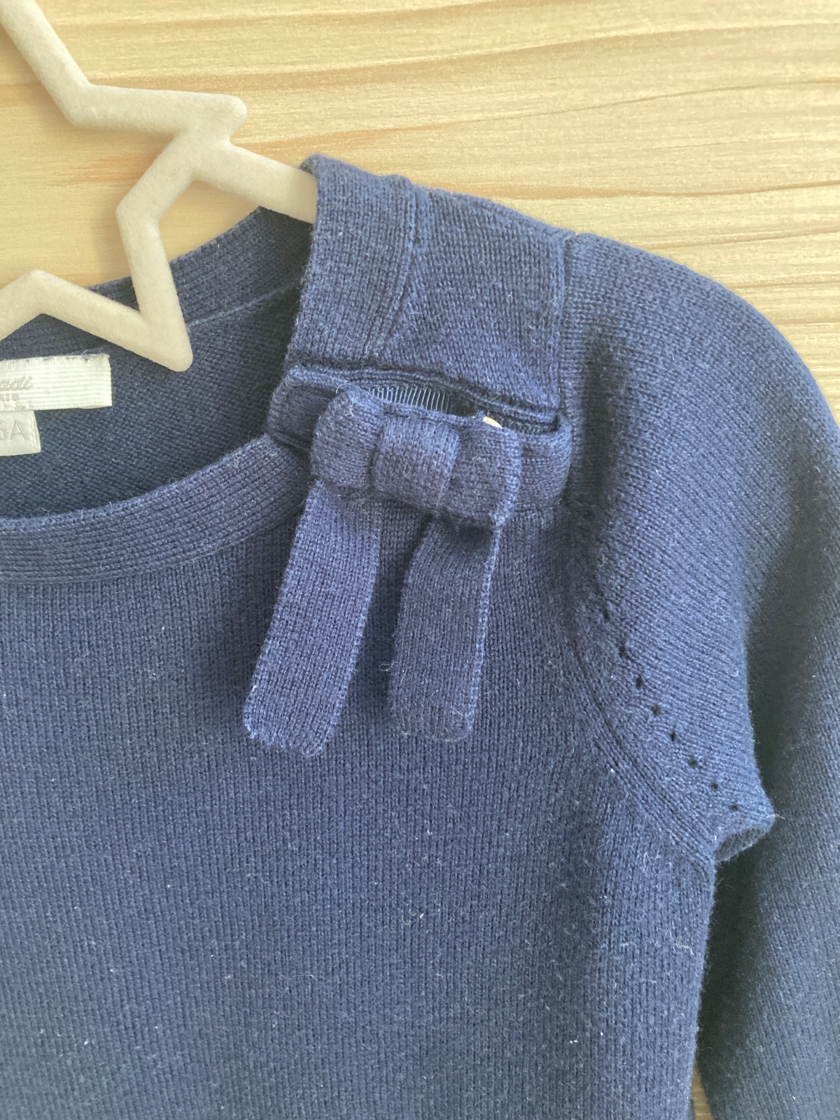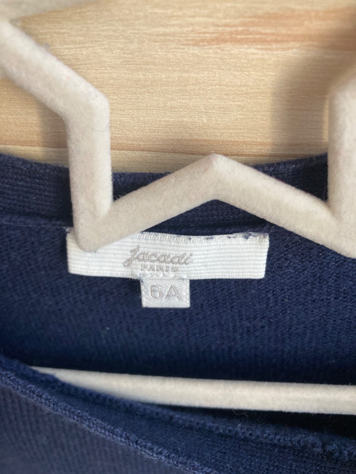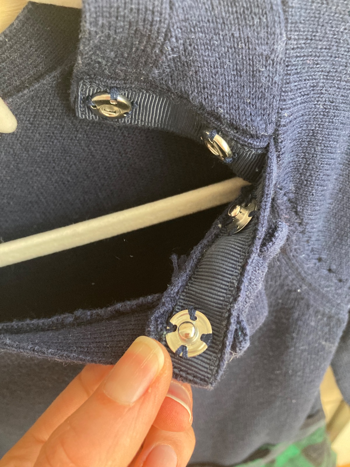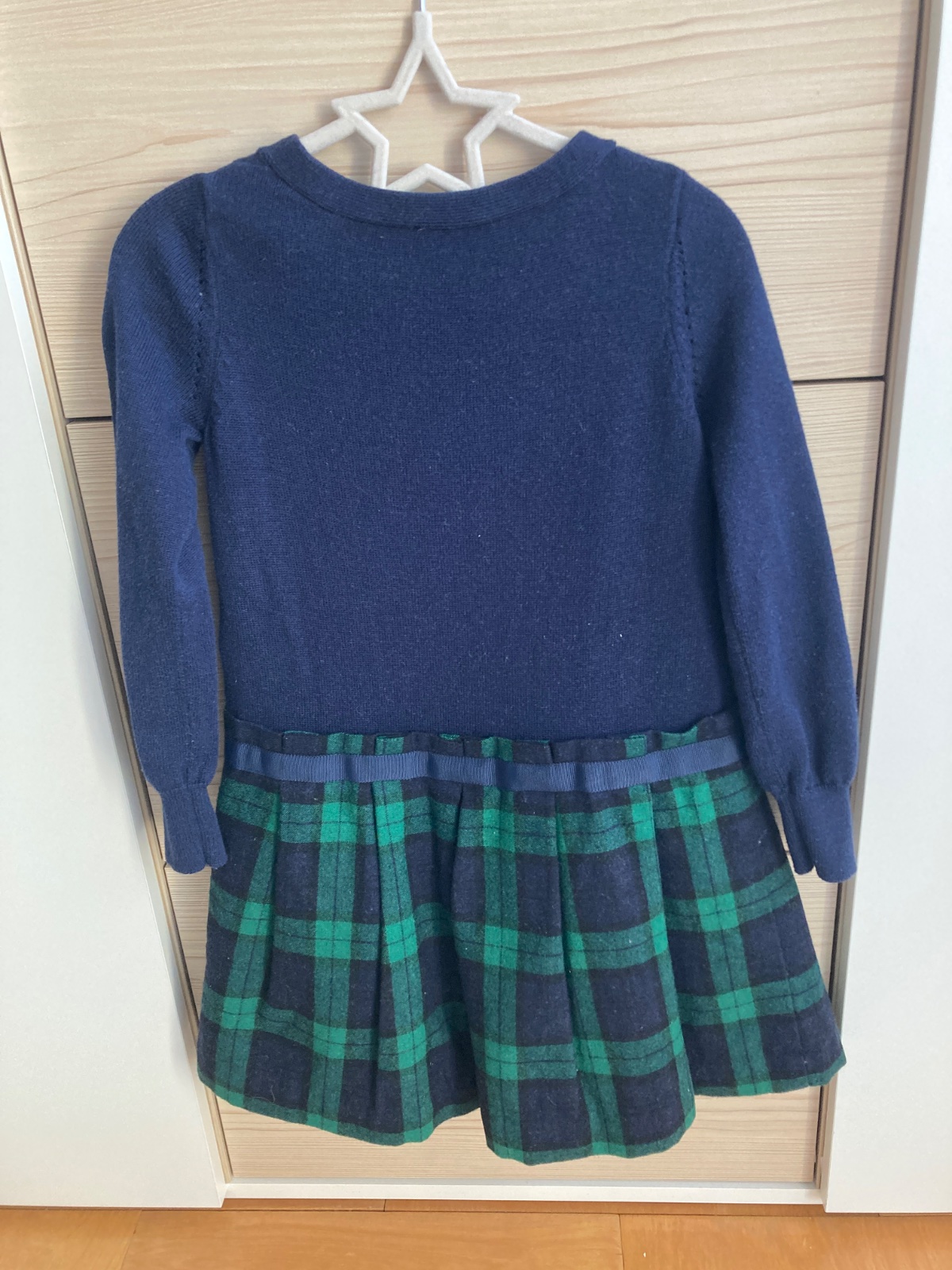 Ponukam na predaj pletene saty Jacadi. Tmavo modry vŕšok je kombinovaný s karovanou zelenou suknou. Suknička a vŕšok sú oddelene akoby mašľou. Na jednom ramene ozdobná maslicka, pod ňou zapínanie na dva cvočky, uľahčuje obliekanie. Tiež na jednom boku je všitý zips. Saty sú podľa mňa vhodne aj na vianočné obdobie. Teple. Bez poškodení či známok nosenia, ako nové. Visacka udava velkost 116, dajú sa nosiť ako 116 a aj ako menšia 122.