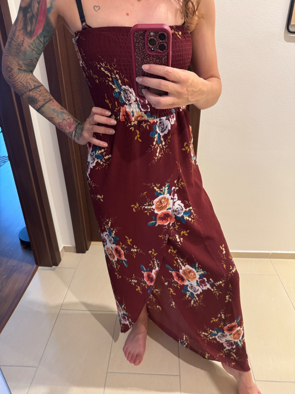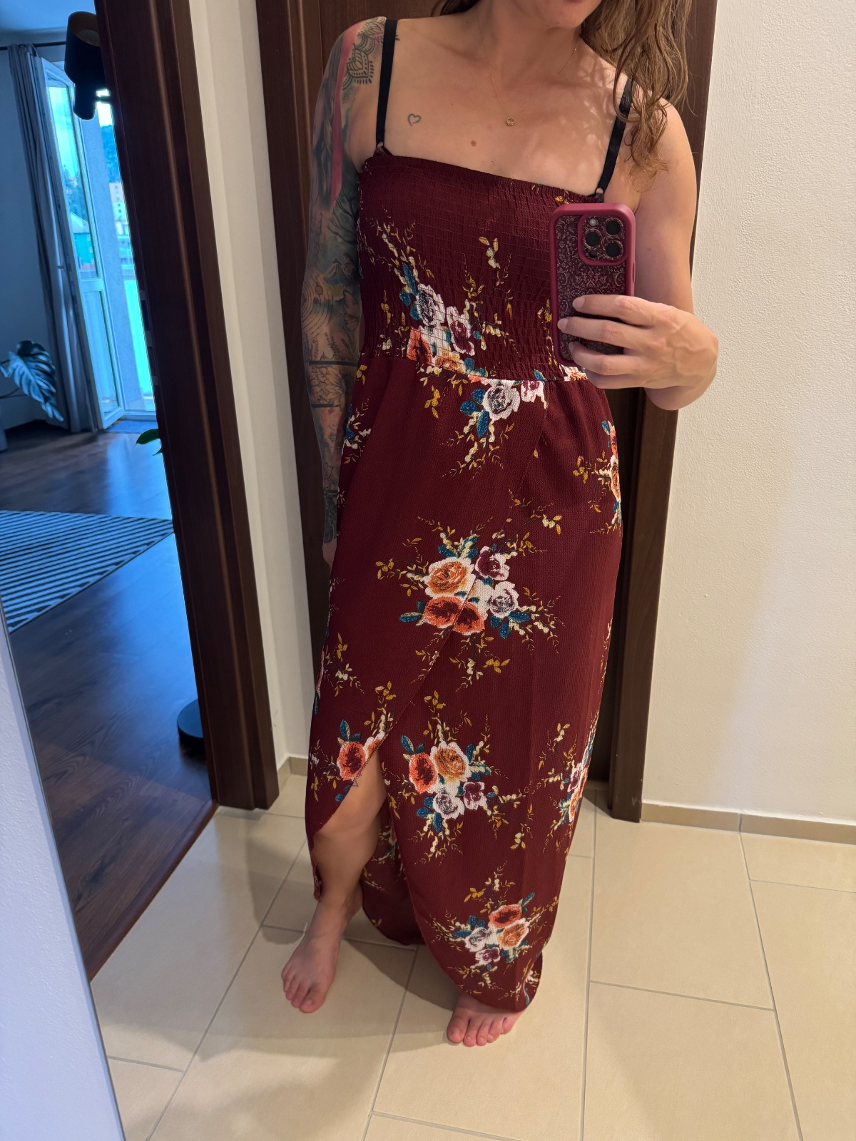 Na predaj dámske letné šaty s potlačou, boli oblecené len raz a su bez poškodení. dlzka je 120 cm, v predu majú rozporok. Šaty sú bez rukavou, vrchná časť je elastická, sadnú teda aj na M. Cena 4 € plus pošta