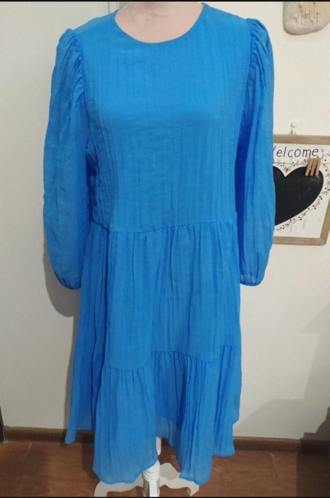 Podsite.Šaty sú krásnej pestrej modrej farby.Oblecene 1x,voľný chrbát.pc 39€.Vhodne aj na príležitosť,veľ uvedená 40,skôr na 38,viď miery