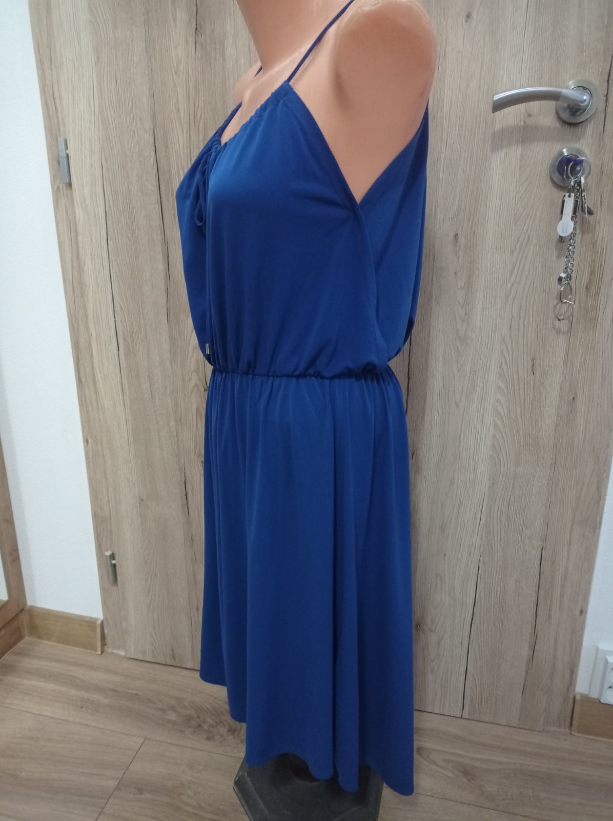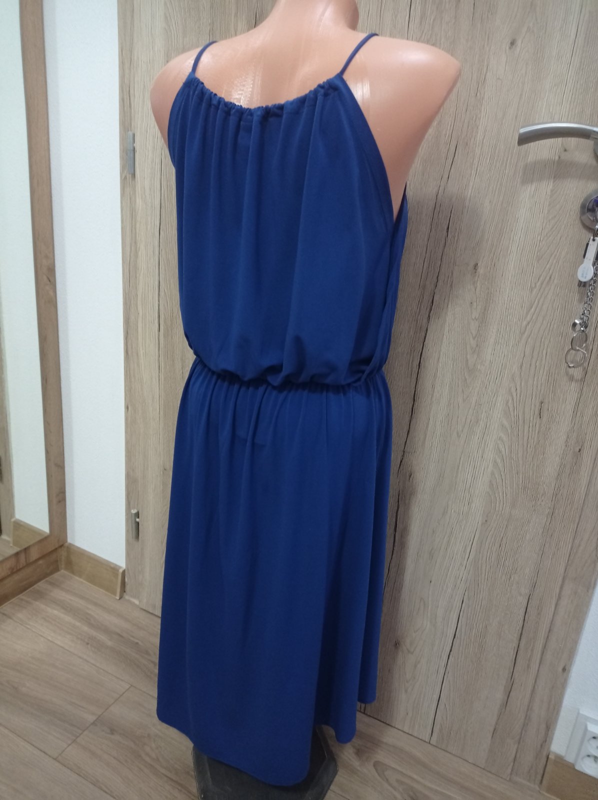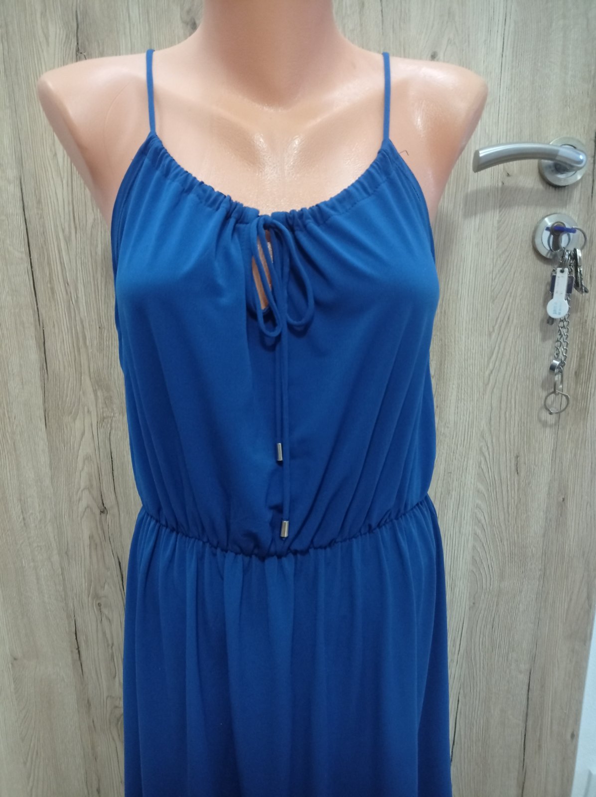 Šaty sú vo výbornom stave, krásnej modrej farby, krásny strih. Výstrih sa dá regulovať. Veľkosť M, dĺžka PD 95 cm, ZD 107 cm.