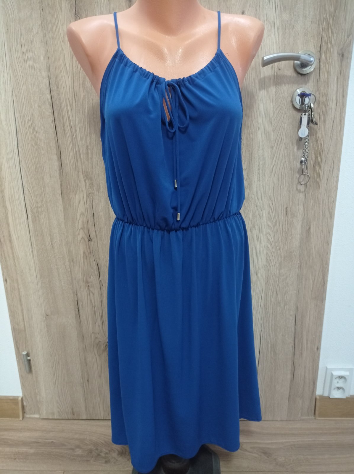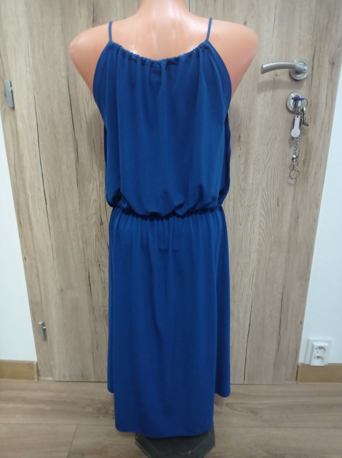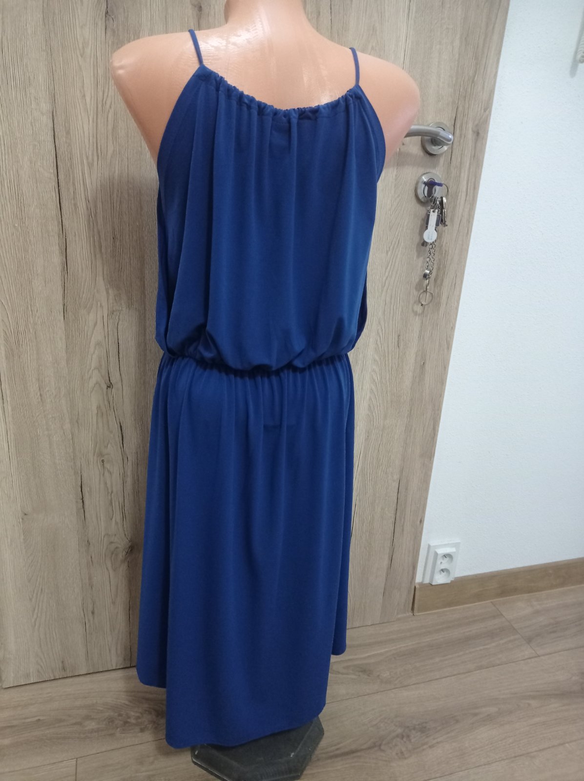 Šaty sú vo výbornom stave, krásnej modrej farby, krásny strih. Výstrih sa dá regulovať. Veľkosť M, dĺžka PD 95 cm, ZD 107 cm.