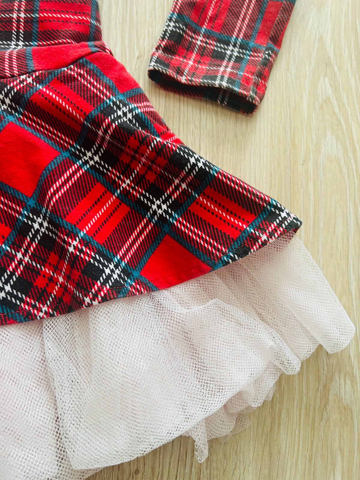 Rozprávkové, pohodlné, nadýchané a rozkošné. Také sú šaty PRIMAVERA. Šaty v krásnom károvanom vzore. Volán strihaný do kruhu elegantne nadľahčuje extra jemný a bohato riasený biely tyl.