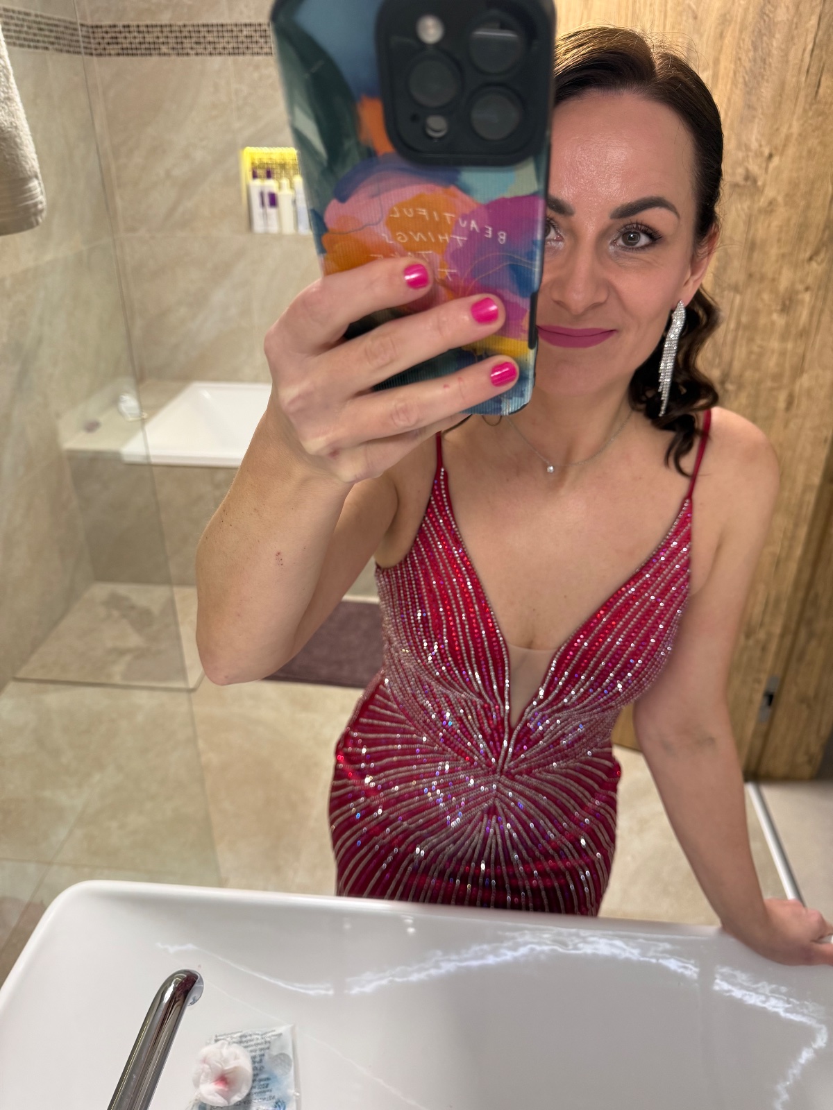Krásne trblietavé šaty, vykladané kamienkami,oblečené raz, čiže vo výbornom stave.
