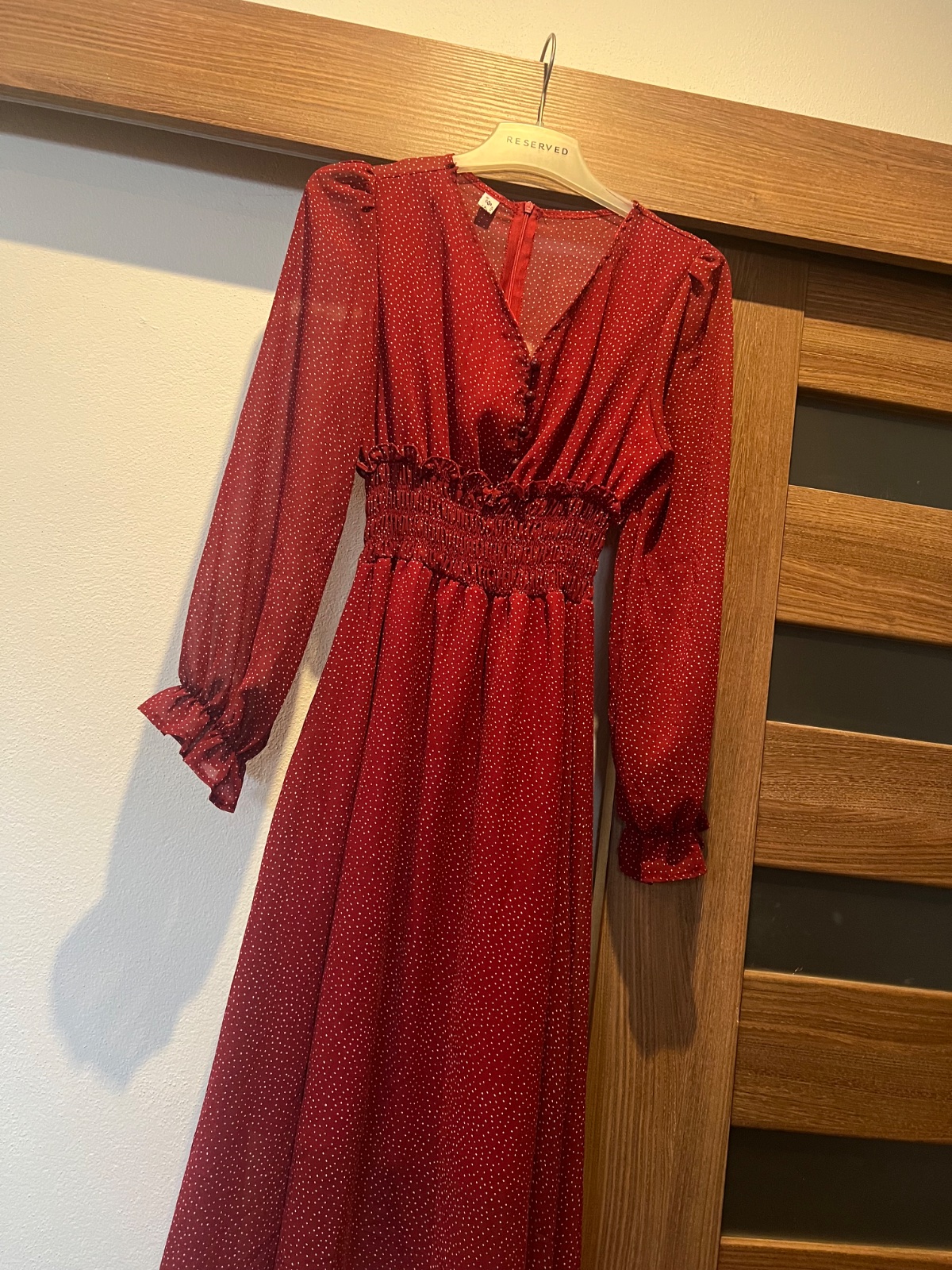 Malo nosené šaty, farba bordová. K cene nie je pripočítané poštovné.