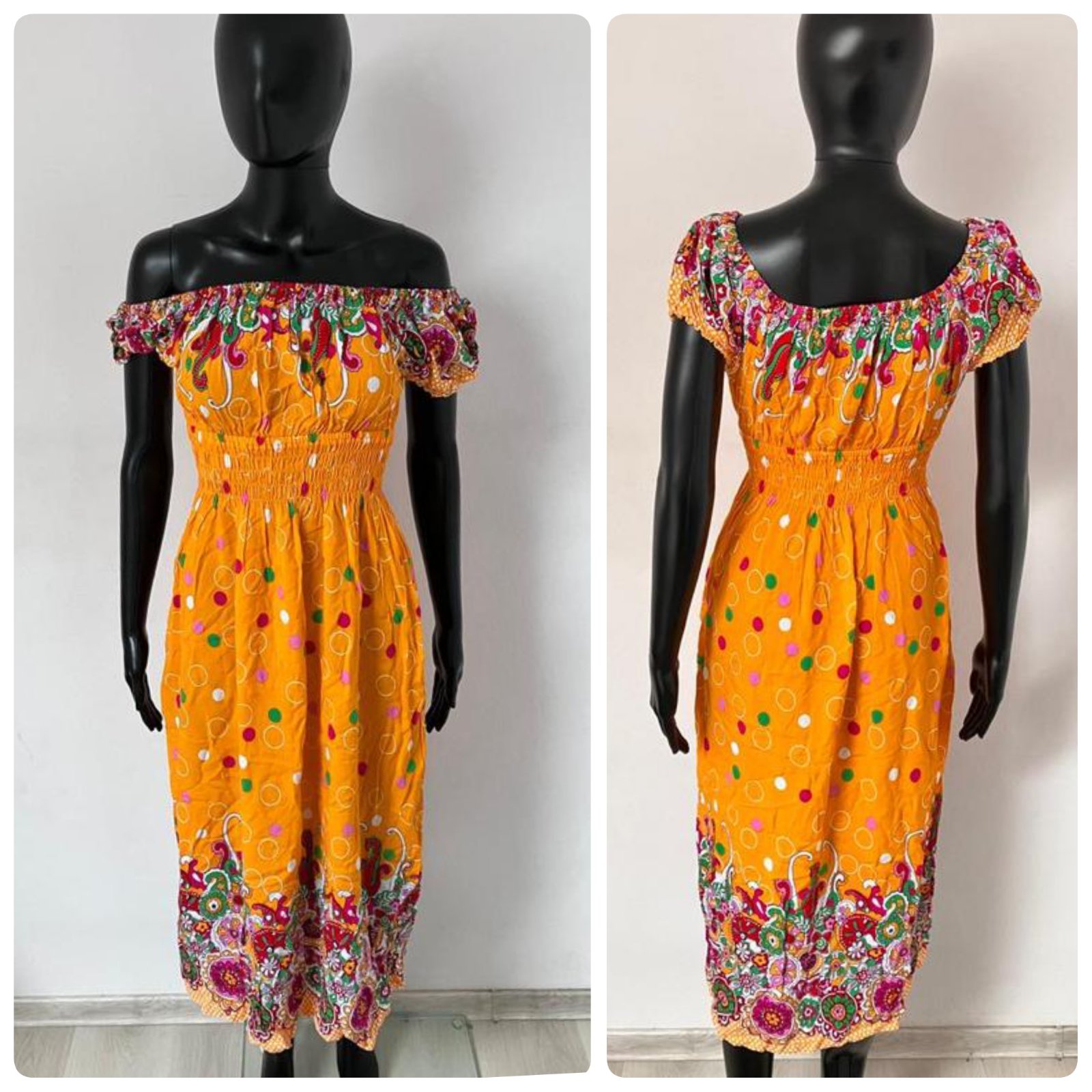 Vzorované letné šaty dlhé s gumou v páse a na ramenách , ľahké, tenké.