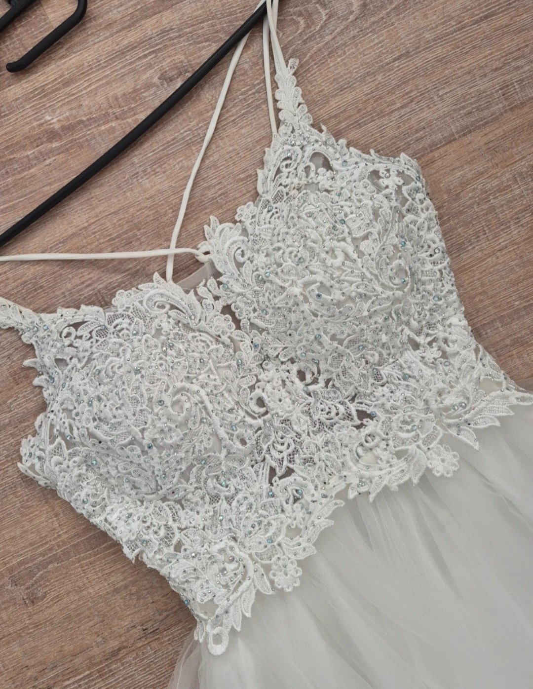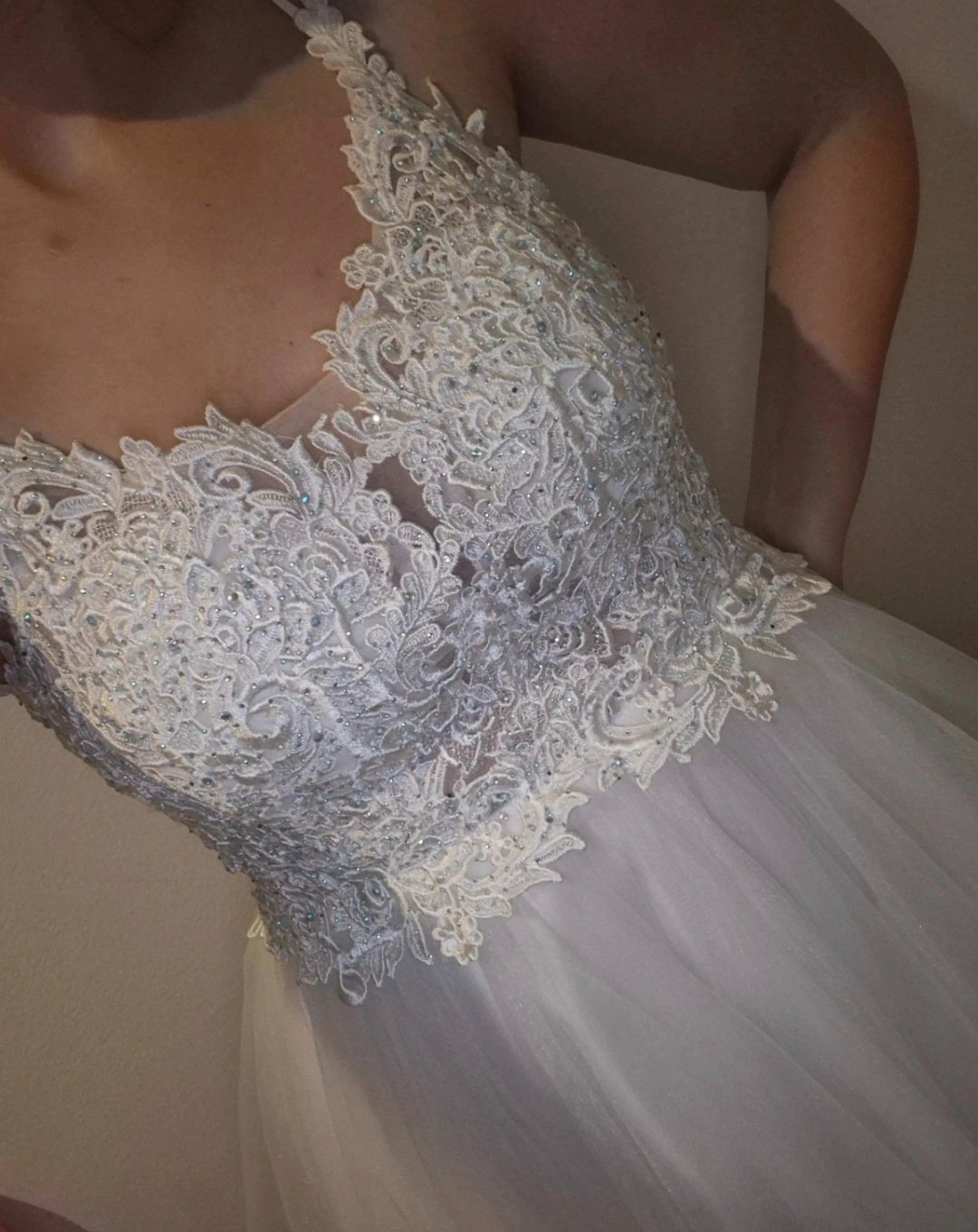 Predám nové ručne vyrobené svadobné šaty s perlami a korálkami. Vystužená vrchná časť a viacvrstvova sukna.