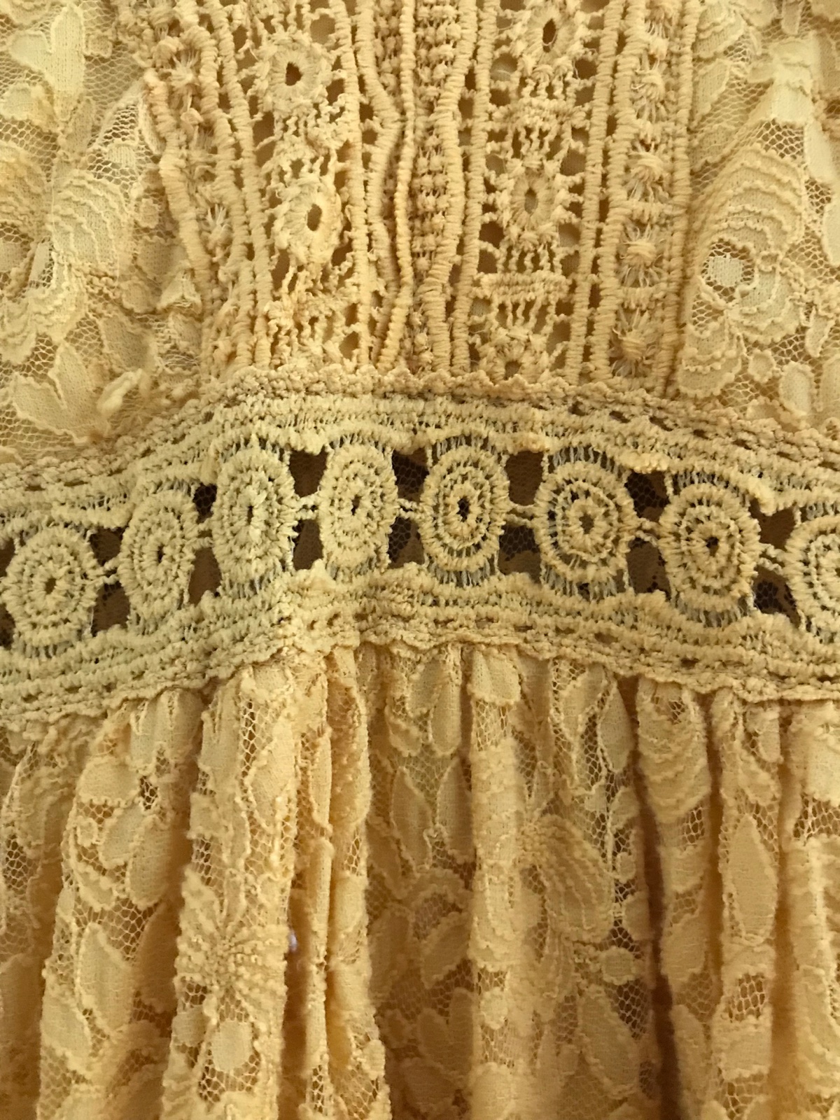 Krásne čipokované šaty - dlhé - podšité - pod prsiami čipka bez podšivky - krásne sedia - nosené - farba reálne ako obr. Č. 2