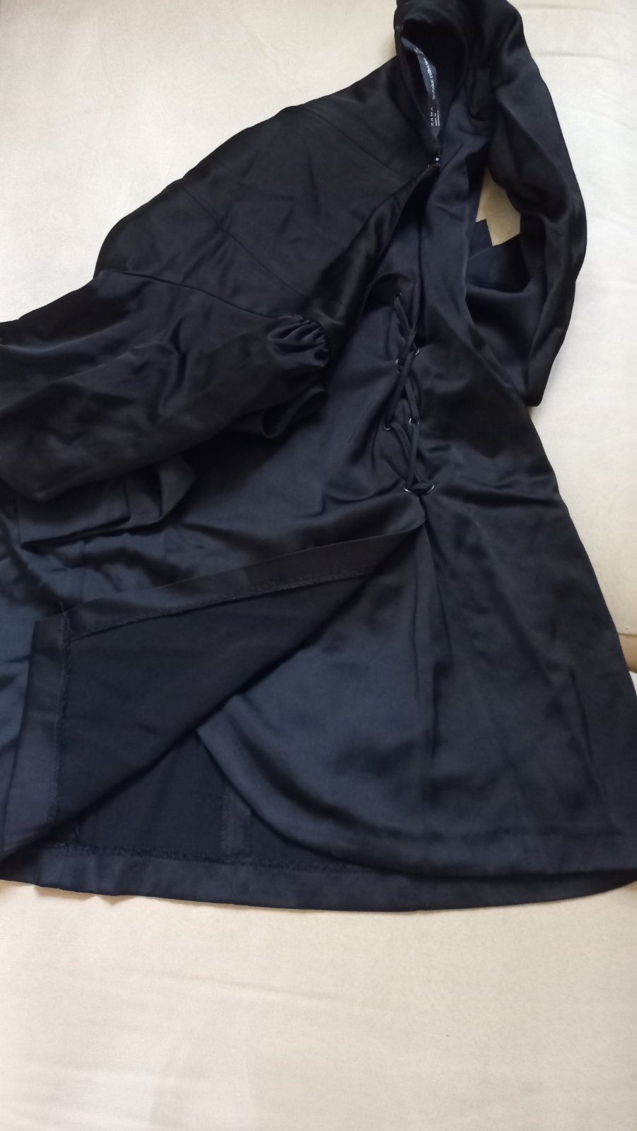 Zaujímavé a prepracované šaty. Prekladaný predný diel, ozdobné šnurovanie. Vzadu zips. Otázky zodpoviem. Dĺžka 80 cm. Sú veľmi šik