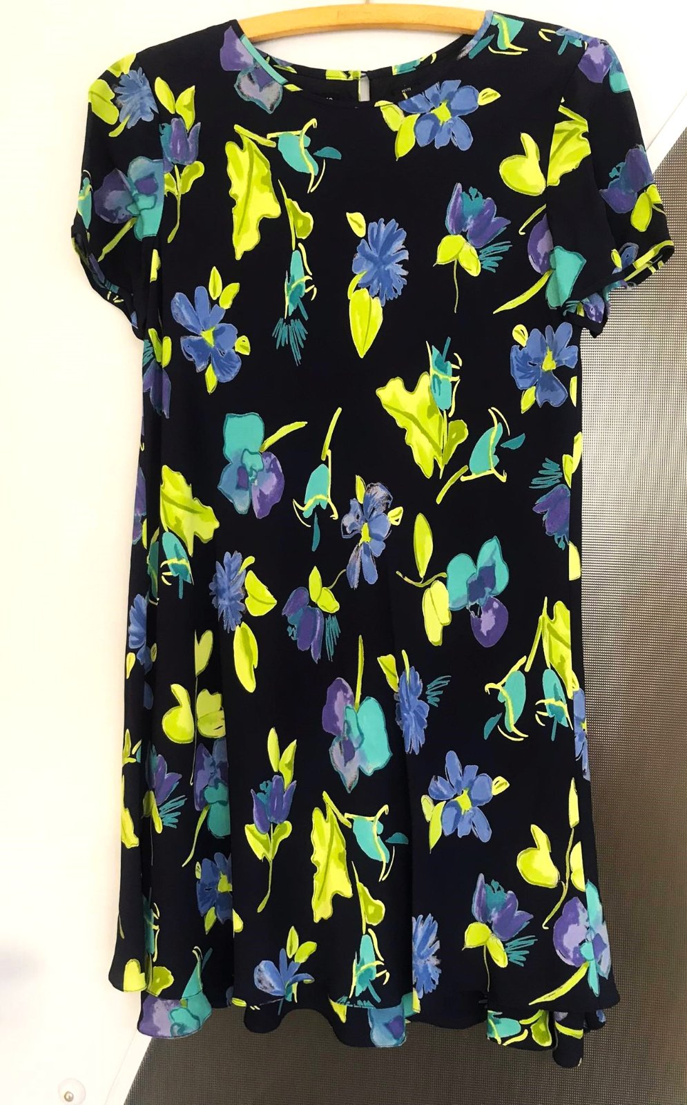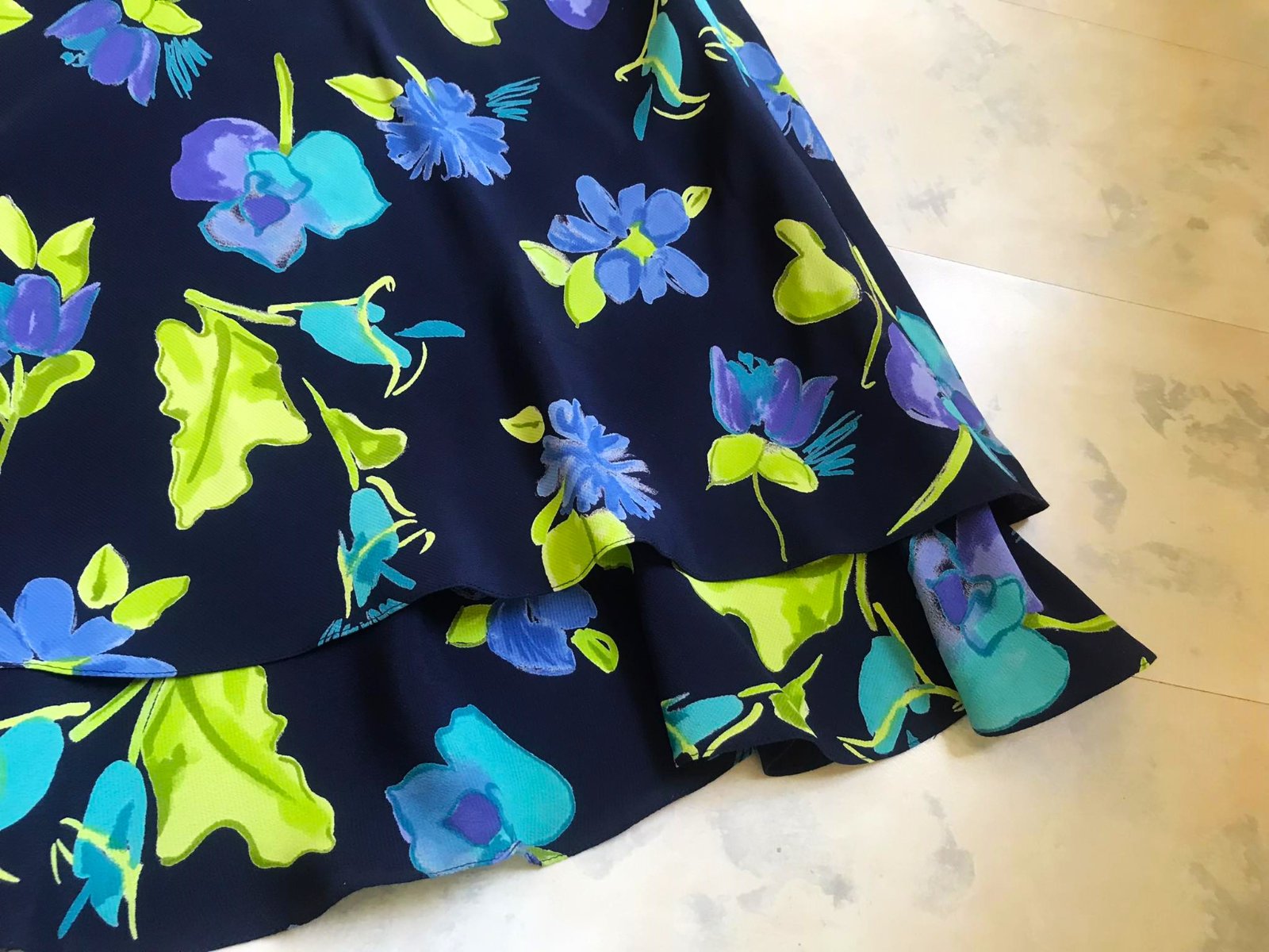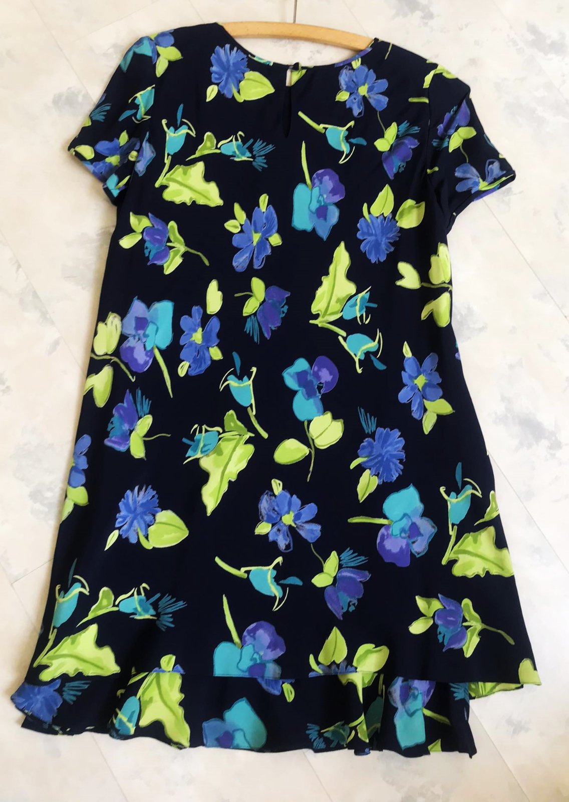 raz oblečené zaujímavé netuctové šaty,veľmi zoštíhľujúci strih , ako keby vrstvené na spodku,pekne padajú,kvalitný materiál,celé podšité,nekrčivé,100 % rayon - syntetický hodváb,vhodné aj na veľkosť č. 42,dovezené z Talianska,top stav a kvalita,hodia sa aj na spoloč. príležitosť,ale nielen,super k balerínkam a tmavomodrým pančuškám, využitie vhodné aj v tehotenstve a po tehotenstve,nakoľko krásne zakryjú nedostatky,rozmery : šírka meraná pod pazuchou = 53 x 2 cm,dlžka celkom 90 cm,vzadu sú o 5 cm dlhšie,dlžka meraná pod pazuchou na boku smerom dole = 65 cm
