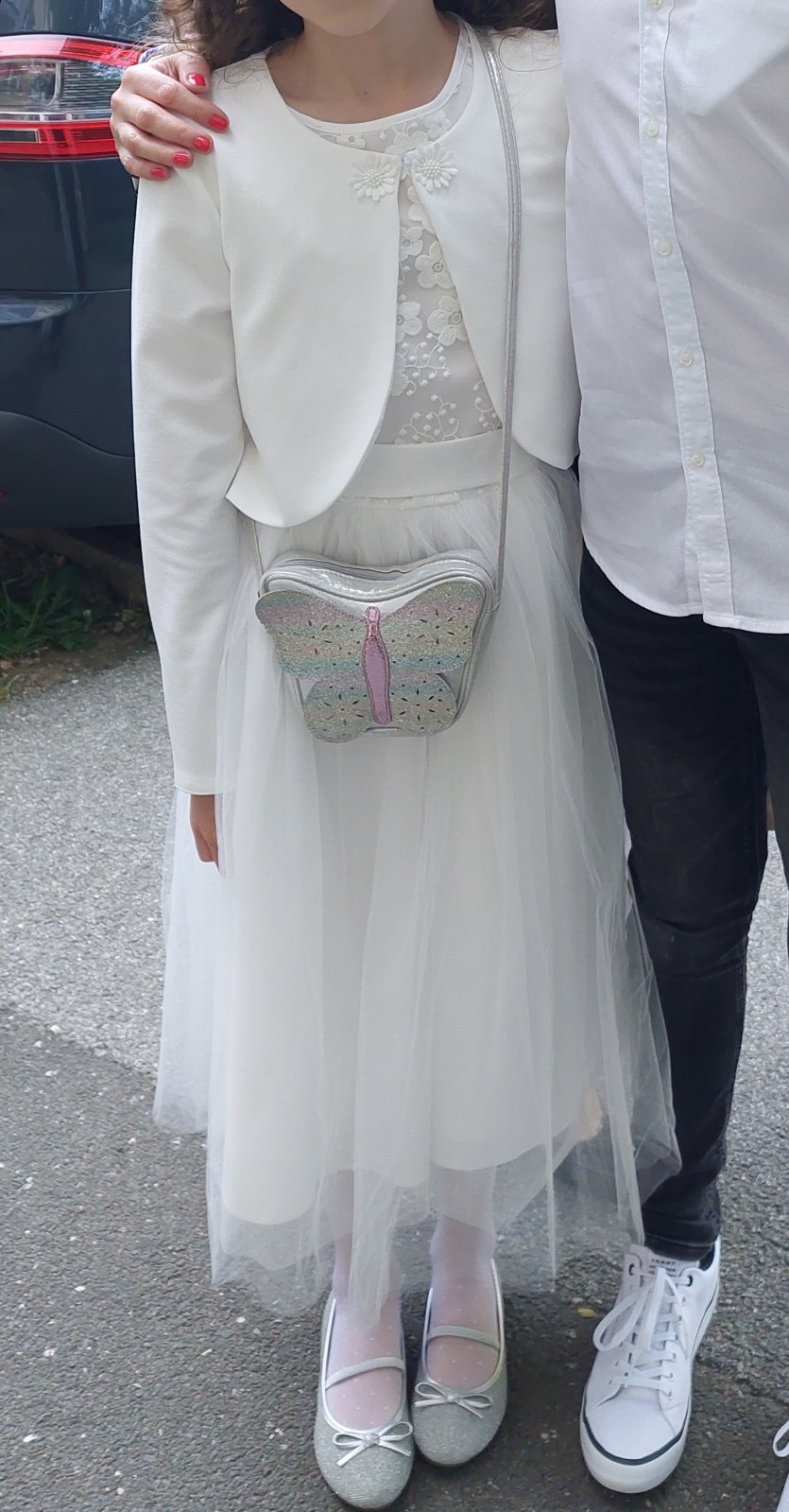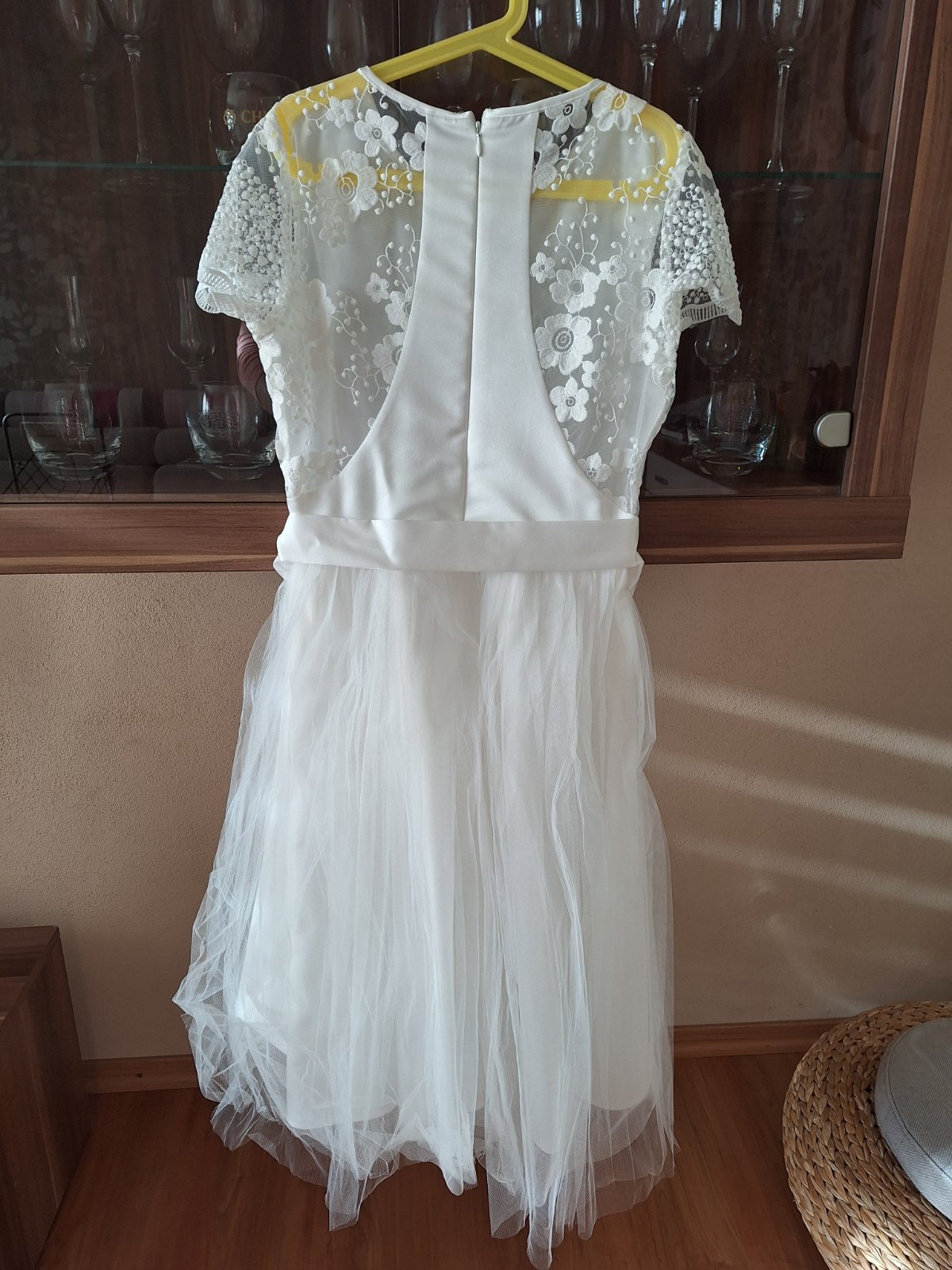 Ponúkam.na predaj dievčenské šaty na 1.sv príjmanie aj inú spoločenskú udalosť, raz oblečené aj s bolerkom.kupované v kamennom obchode. Šaty sú bez poškodenia a tyl je vykrčený, lebo šaty boli odložené v boxe cena s poštovným 2.tr.